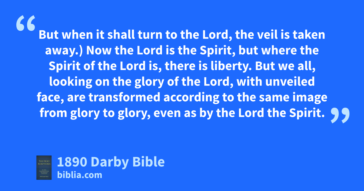 12 Having therefore such hope, we use much boldness: 13 and not according as Moses put a veil on his own face, so that the children of Israel should not fix their eyes on the end of that annulled. 14 But their thoughts have been darkened, for unto this day the same veil remains in reading the old covenant, unremoved, which in Christ is annulled. 15 But unto this day, when Moses is read, the veil lies upon their heart. 16 But when it shall turn to the Lord, the veil is taken away.) 17 Now the Lord is the Spirit, but where the Spirit of the Lord is, there is liberty. 18 But we all, looking on the glory of the Lord, with unveiled face, are transformed according to the same image from glory to glory, even as by the Lord the Spirit.