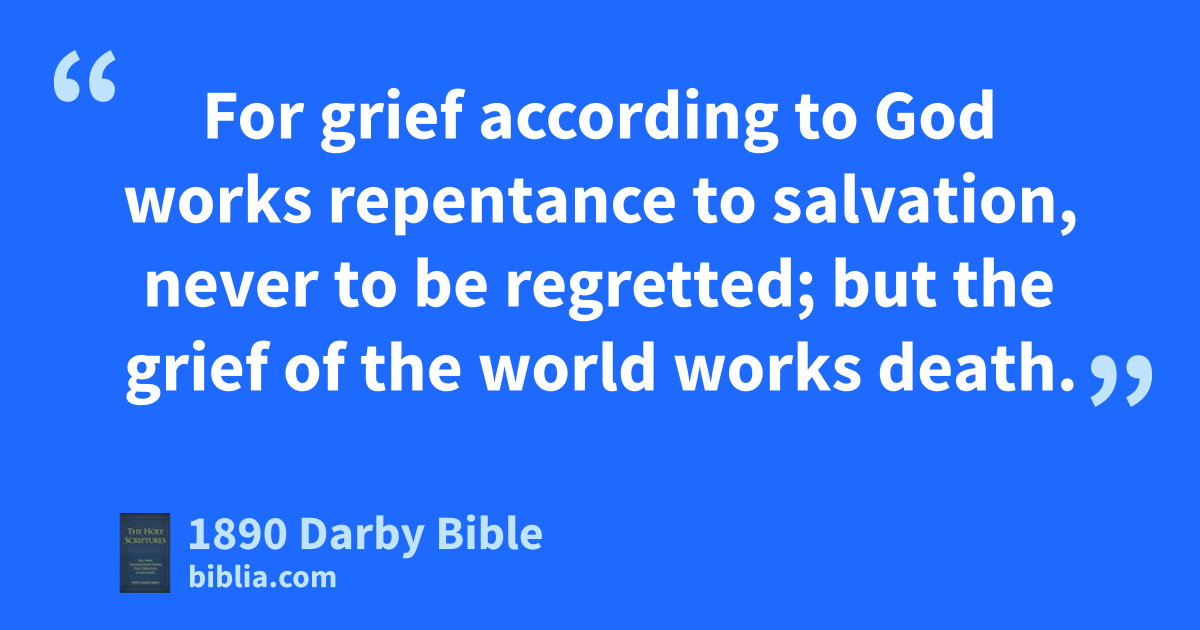 5 For indeed, when we came into Macedonia, our flesh had no rest, but we were afflicted in every way; without combats, within fears. 6 But he who encourages those that are brought low, even God, encouraged us by the coming of Titus; 7 and not by his coming only, but also through the encouragement with which he was encouraged as to you; relating to us your ardent desire, your mourning, your zeal for me; so that I the more rejoiced. 8 For if also I grieved you in the letter, I do not regret it, if even I have regretted it; for I see that that letter, if even it were only for a time, grieved you. 9 Now I rejoice, not that ye have been grieved, but that ye have been grieved to repentance; for ye have been grieved according to God, that in nothing ye might be injured by us. 10 For grief according to God works repentance to salvation, never to be regretted; but the grief of the world works death. 11 For, behold, this same thing, your being grieved according to God, how much diligence it wrought in you, but what excusing of yourselves, but what indignation, but what fear, but what ardent desire, but what zeal, but what vengeance: in every way ye have proved yourselves to be pure in the matter.