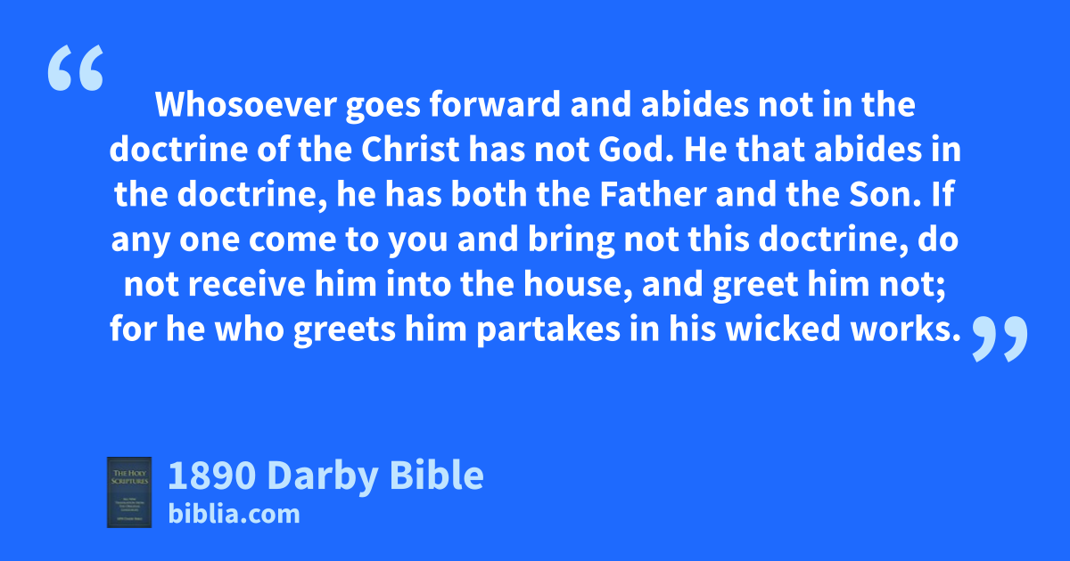 10 If any one come to you and bring not this doctrine, do not receive him into the house, and greet him not; 11 for he who greets him partakes in his wicked works.