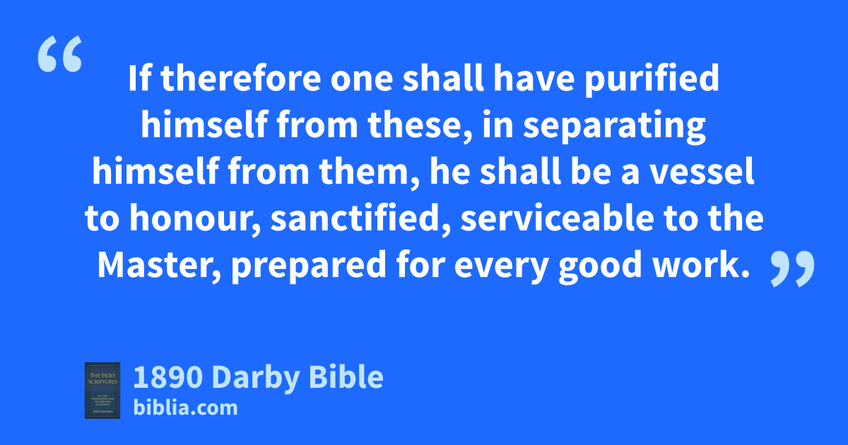 19 Yet the firm foundation of God stands, having this seal, The Lord knows those that are his; and, Let every one who names the name of the Lord withdraw from iniquity. 20 But in a great house there are not only gold and silver vessels, but also wooden and earthen; and some to honour, and some to dishonour. 21 If therefore one shall have purified himself from these, in separating himself from them, he shall be a vessel to honour, sanctified, serviceable to the Master, prepared for every good work.