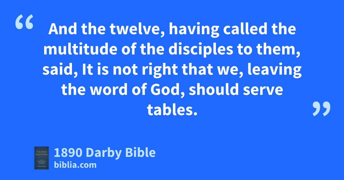 1 But in those days, the disciples multiplying in number, there arose a murmuring of the Hellenists against the Hebrews because their widows were overlooked in the daily ministration. 2 And the twelve, having called the multitude of the disciples to them, said, It is not right that we, leaving the word of God, should serve tables. 3 Look out therefore, brethren, from among yourselves seven men, well reported of, full of the Holy Spirit and wisdom, whom we will establish over this business: 4 but we will give ourselves up to prayer and the ministry of the word. 5 And the saying pleased the whole multitude: and they chose Stephen, a man full of faith and the Holy Spirit, and Philip, and Prochorus, and Nicanor, and Timon, and Parmenas, and Nicolas, a proselyte of Antioch, 6 whom they set before the apostles; and, having prayed, they laid their hands on them. 7 And the word of God increased; and the number of the disciples in Jerusalem was very greatly multiplied, and a great crowd of the priests obeyed the faith.