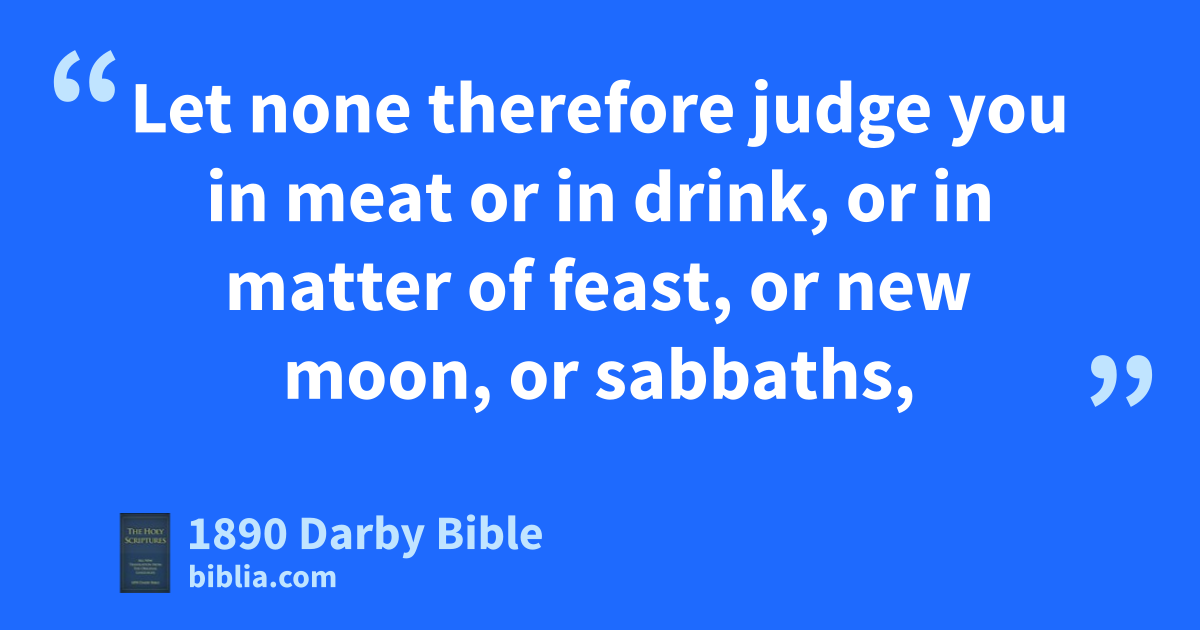 16 Let none therefore judge you in meat or in drink, or in matter of feast, or new moon, or sabbaths, 17 which are a shadow of things to come; but the body is of Christ. 18 Let no one fraudulently deprive you of your prize, doing his own will in humility and worship of angels, entering into things which he has not seen, vainly puffed up by the mind of his flesh, 19 and not holding fast the head, from whom all the body, ministered to and united together by the joints and bands, increases with the increase of God. 20 If ye have died with Christ from the elements of the world, why as if alive in the world do ye subject yourselves to ordinances? 21 Do not handle, do not taste, do not touch, 22 (things which are all for destruction in the using of them:) according to the injunctions and teachings of men, 23 (which have indeed an appearance of wisdom in voluntary worship, and humility, and harsh treatment of the body, not in a certain honour,) to the satisfaction of the flesh.