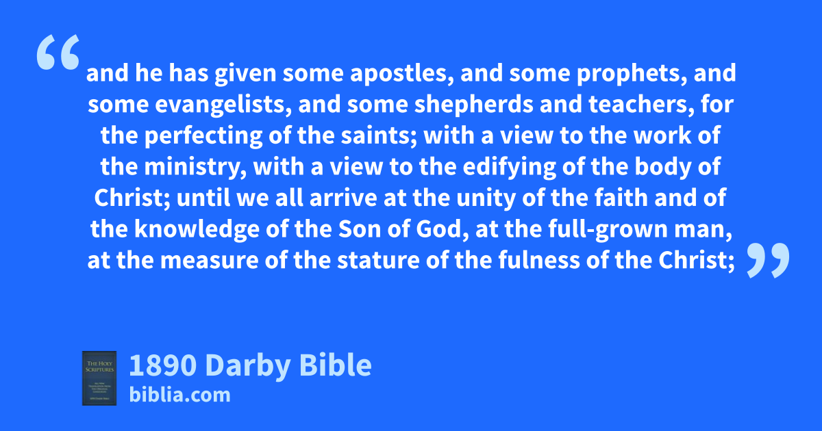 2 with all lowliness and meekness, with long-suffering, bearing with one another in love; 3 using diligence to keep the unity of the Spirit in the uniting bond of peace. 4 There is one body and one Spirit, as ye have been also called in one hope of your calling; 5 one Lord, one faith, one baptism; 6 one God and Father of all, who is over all, and through all, and in us all. 7 But to each one of us has been given grace according to the measure of the gift of the Christ. 8 Wherefore he says, Having ascended up on high, he has led captivity captive, and has given gifts to men. 9 But that he ascended, what is it but that he also descended into the lower parts of the earth? 10 He that descended is the same who has also ascended up above all the heavens, that he might fill all things; 11 and he has given some apostles, and some prophets, and some evangelists, and some shepherds and teachers, 12 for the perfecting of the saints; with a view to the work of the ministry, with a view to the edifying of the body of Christ; 13 until we all arrive at the unity of the faith and of the knowledge of the Son of God, at the full-grown man, at the measure of the stature of the fulness of the Christ; 14 in order that we may be no longer babes, tossed and carried about by every wind of that teaching which is in the sleight of men, in unprincipled cunning with a view to systematized error; 15 but, holding the truth in love, we may grow up to him in all things, who is the head, the Christ: 16 from whom the whole body, fitted together, and connected by every joint of supply, according to the working in its measure of each one part, works for itself the increase of the body to its self-building up in love.