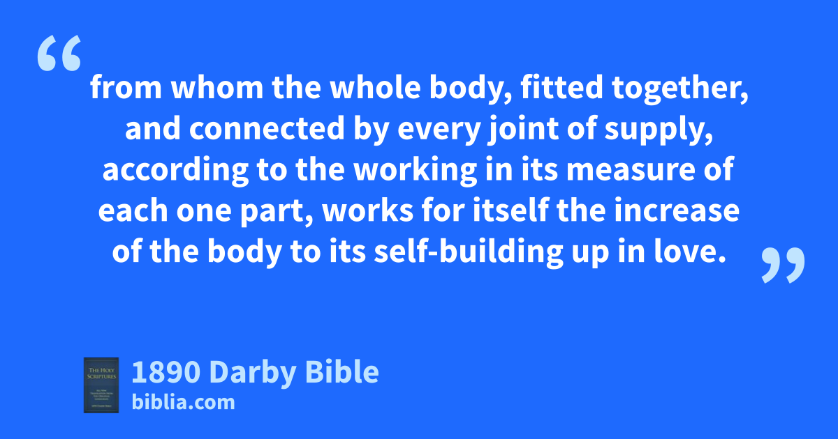 2 with all lowliness and meekness, with long-suffering, bearing with one another in love; 3 using diligence to keep the unity of the Spirit in the uniting bond of peace. 4 There is one body and one Spirit, as ye have been also called in one hope of your calling; 5 one Lord, one faith, one baptism; 6 one God and Father of all, who is over all, and through all, and in us all. 7 But to each one of us has been given grace according to the measure of the gift of the Christ. 8 Wherefore he says, Having ascended up on high, he has led captivity captive, and has given gifts to men. 9 But that he ascended, what is it but that he also descended into the lower parts of the earth? 10 He that descended is the same who has also ascended up above all the heavens, that he might fill all things; 11 and he has given some apostles, and some prophets, and some evangelists, and some shepherds and teachers, 12 for the perfecting of the saints; with a view to the work of the ministry, with a view to the edifying of the body of Christ; 13 until we all arrive at the unity of the faith and of the knowledge of the Son of God, at the full-grown man, at the measure of the stature of the fulness of the Christ; 14 in order that we may be no longer babes, tossed and carried about by every wind of that teaching which is in the sleight of men, in unprincipled cunning with a view to systematized error; 15 but, holding the truth in love, we may grow up to him in all things, who is the head, the Christ: 16 from whom the whole body, fitted together, and connected by every joint of supply, according to the working in its measure of each one part, works for itself the increase of the body to its self-building up in love.