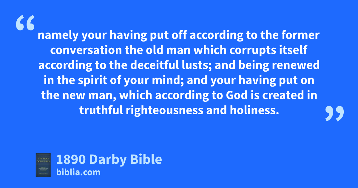 17 This I say therefore, and testify in the Lord, that ye should no longer walk as the rest of the nations walk in the vanity of their mind, 18 being darkened in understanding, estranged from the life of God by reason of the ignorance which is in them, by reason of the hardness of their hearts, 19 who having cast off all feeling, have given themselves up to lasciviousness, to work all uncleanness with greedy unsatisfied lust. 20 But ye have not thus learnt the Christ, 21 if ye have heard him and been instructed in him according as the truth is in Jesus; 22 namely your having put off according to the former conversation the old man which corrupts itself according to the deceitful lusts; 23 and being renewed in the spirit of your mind; 24 and your having put on the new man, which according to God is created in truthful righteousness and holiness. 25 Wherefore, having put off falsehood, speak truth every one with his neighbour, because we are members one of another. 26 Be angry, and do not sin; let not the sun set upon your wrath, 27 neither give room for the devil. 28 Let the stealer steal no more, but rather let him toil, working what is honest with his hands, that he may have to distribute to him that has need. 29 Let no corrupt word go out of your mouth, but if there be any good one for needful edification, that it may give grace to those that hear it. 30 And do not grieve the Holy Spirit of God, with which ye have been sealed for the day of redemption. 31 Let all bitterness, and heat of passion, and wrath, and clamour, and injurious language, be removed from you, with all malice; 32 and be to one another kind, compassionate, forgiving one another, so as God also in Christ has forgiven you.