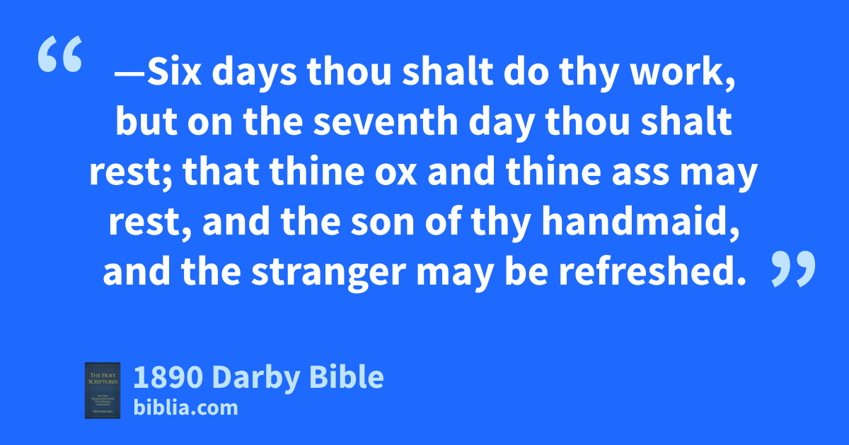 10 And six years thou shalt sow thy land, and gather in its produce; 11 but in the seventh thou shalt let it rest and lie fallow, that the poor of thy people may eat of it; and what they leave, the beasts of the field shall eat. In like manner thou shalt deal with thy vineyard, and with thine olive-tree. 12 —Six days thou shalt do thy work, but on the seventh day thou shalt rest; that thine ox and thine ass may rest, and the son of thy handmaid, and the stranger may be refreshed. 13 And ye shall be on your guard as to everything that I have said unto you; and shall make no mention of the name of other gods—it shall not be heard in thy mouth. 14 Thrice in the year thou shalt celebrate a feast to me. 15 Thou shalt keep the feast of unleavened bread, (thou shalt eat unleavened bread seven days, as I have commanded thee, in the time appointed of the month Abib; for in it thou camest out from Egypt; and none shall appear in my presence empty;) 16 and the feast of harvest, the first-fruits of thy labours which thou hast sown in the field, and the feast of in-gathering, at the end of the year, when thou gatherest in thy labours out of the field. 17 Three times in the year all thy males shall appear in the presence of the Lord Jehovah. 18 Thou shalt not offer the blood of my sacrifice with leavened bread; neither shall the fat of my feast remain all night until the morning. 19 The first of the first-fruits of thy land thou shalt bring into the house of Jehovah thy God. Thou shalt not boil a kid in its mother’s milk.