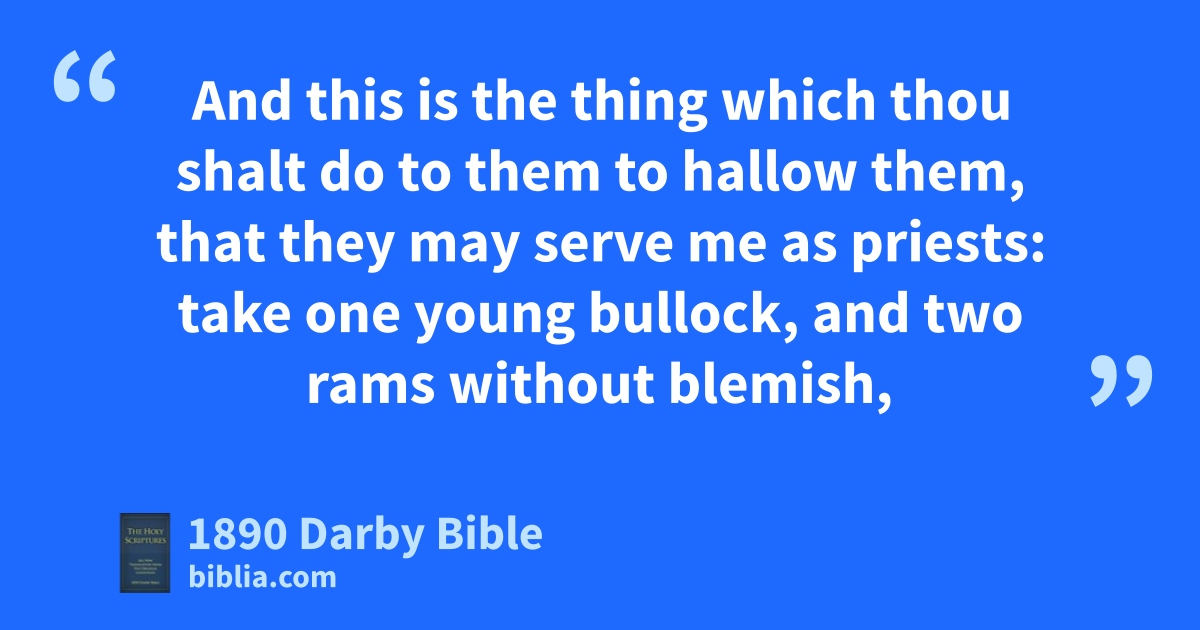 1 And this is the thing which thou shalt do to them to hallow them, that they may serve me as priests: take one young bullock, and two rams without blemish, 2 and unleavened bread, and unleavened cakes mingled with oil, and unleavened wafers anointed with oil—of wheaten flour shalt thou make them. 3 And thou shalt put them into one basket, and present them in the basket, with the bullock and the two rams. 4 And Aaron and his sons thou shalt bring near the entrance of the tent of meeting, and shalt bathe them with water. 5 And thou shalt take the garments, and clothe Aaron with the vest, and the cloak of the ephod, and the ephod, and the breastplate, and shalt gird him with the girdle of the ephod. 6 And thou shalt put the turban upon his head, and fasten the holy diadem to the turban, 7 and shalt take the anointing oil, and pour it on his head, and anoint him. 8 And thou shalt bring his sons near, and clothe them with the vests. 9 And thou shalt gird them with the girdle—Aaron and his sons, and bind the high caps on them; and the priesthood shall be theirs for an everlasting statute; and thou shalt consecrate Aaron and his sons. 10 And thou shalt present the bullock before the tent of meeting; and Aaron and his sons shall lay their hands upon the head of the bullock; 11 and thou shalt slaughter the bullock before Jehovah, at the entrance of the tent of meeting; 12 and thou shalt take of the blood of the bullock, and put it on the horns of the altar with thy finger, and shalt pour all the blood at the bottom of the altar. 13 And thou shalt take all the fat that covereth the inwards, and the net of the liver, and the two kidneys, and the fat that is upon them, and burn them upon the altar. 14 And the flesh of the bullock, and its skin, and its dung, shalt thou burn with fire outside the camp: it is a sin-offering. 15 And thou shalt take one of the rams, and Aaron and his sons shall put their hands upon the head of the ram; 16 and thou shalt slaughter the ram, and shalt take its blood, and sprinkle it on the altar round about. 17 And thou shalt cut up the ram into its pieces, and wash its inwards, and its legs, and put them upon its pieces, and upon its head; 18 and thou shalt burn the whole ram upon the altar: it is a burnt-offering to Jehovah—a sweet odour; it is an offering by fire to Jehovah. 19 And thou shalt take the second ram, and Aaron and his sons shall lay their hands upon the head of the ram; 20 and thou shalt slaughter the ram, and take of its blood, and put it on the tip of the right ear of Aaron, and on the tip of the right ear of his sons, and on the thumb of their right hand, and on the great toe of their right foot; and thou shalt sprinkle the blood upon the altar round about. 21 And thou shalt take of the blood that is upon the altar, and of the anointing oil, and sprinkle it on Aaron, and on his garments, and on his sons, and on the garments of his sons with him; and he shall be hallowed, and his garments, and his sons, and his sons’ garments with him. 22 Also of the ram shalt thou take the fat, and the fat-tail, and the fat that covereth the inwards, and the net of the liver, and the two kidneys, and the fat that is upon them, and the right shoulder—for it is a ram of consecration— 23 and one loaf of bread, and one cake of oiled bread, and one wafer out of the basket of the unleavened bread that is before Jehovah; 24 and thou shalt put all this in the hands of Aaron, and in the hands of his sons, and shalt wave them as a wave-offering before Jehovah. 25 And thou shalt receive them of their hand and burn them upon the altar over the burnt-offering, for a sweet odour before Jehovah: it is an offering by fire to Jehovah. 26 And thou shalt take the breast of the ram of consecration which is for Aaron, and wave it as a wave-offering before Jehovah; and it shall be thy part. 27 And thou shalt hallow the breast of the wave-offering, and the shoulder of the heave-offering, that hath been waved and heaved up, of the ram of the consecration, of that which is for Aaron, and of that which is for his sons. 28 And they shall be for Aaron and his sons, as an everlasting statute, on the part of the children of Israel; for it is a heave-offering; and it shall be a heave-offering on the part of the children of Israel of the sacrifices of their peace-offerings, as their heave-offering to Jehovah. 29 And the holy garments of Aaron shall be his sons’ after him, to be anointed therein, and to be consecrated in them. 30 The son that is priest in his stead shall put them on seven days, when he cometh into the tent of meeting to serve in the sanctuary. 31 And thou shalt take the ram of the consecration, and boil its flesh in a holy place. 32 And Aaron and his sons shall eat the flesh of the ram, and the bread that is in the basket, at the entrance of the tent of meeting. 33 They shall eat the things with which the atonement was made, to consecrate and to hallow them; but a stranger shall not eat of them, for they are holy. 34 And if any of the flesh of the consecration, and of the bread, remain until the morning, then thou shalt burn the remainder with fire: it shall not be eaten, for it is holy. 35 And thus shalt thou do to Aaron, and to his sons, according to all that I have commanded thee: seven days shalt thou consecrate them. 36 And thou shalt offer every day a bullock as a sin-offering for atonement; and the altar shalt thou cleanse from sin, by making atonement for it, and shalt anoint it, to hallow it. 37 Seven days shalt thou make atonement for the altar and hallow it; and the altar shall be most holy: whatever toucheth the altar shall be holy.