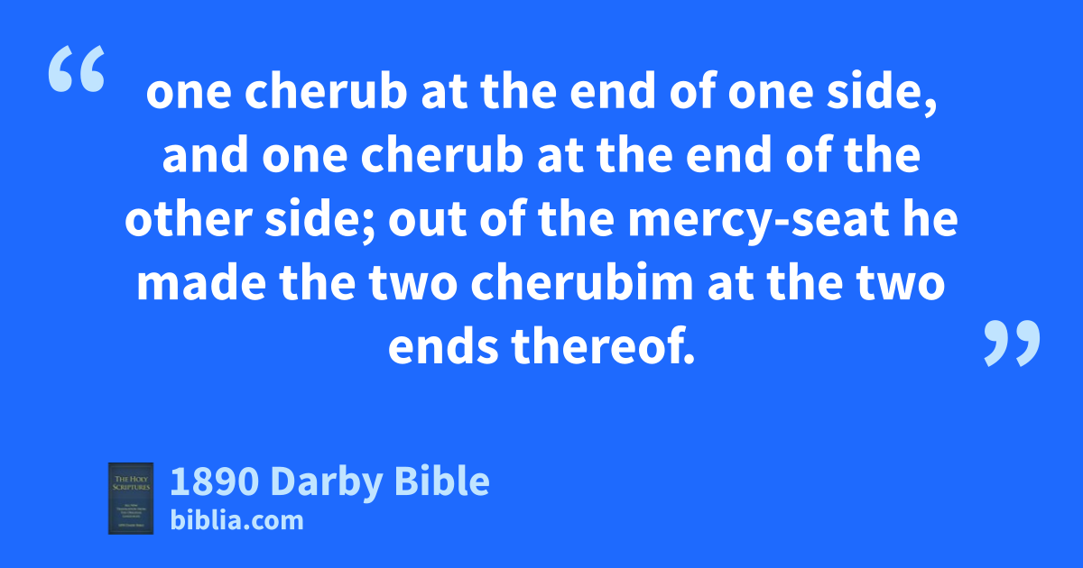 1 And Bezaleel made the ark of acacia-wood; two cubits and a half the length thereof, and a cubit and a half the breadth thereof, and a cubit and a half the height thereof. 2 And he overlaid it with pure gold inside and outside, and made a border of gold upon it round about. 3 And he cast for it four rings of gold, for its four corners: two rings on the one side of it, and two rings on the other side of it. 4 And he made staves of acacia-wood and overlaid them with gold. 5 And he put the staves into the rings on the sides of the ark, to carry the ark. 6 —And he made a mercy-seat of pure gold; two cubits and a half the length thereof, and one cubit and a half the breadth thereof. 7 And he made two cherubim of gold; of beaten work did he make them, at the two ends of the mercy-seat; 8 one cherub at the end of one side, and one cherub at the end of the other side; out of the mercy-seat he made the two cherubim at the two ends thereof. 9 And the cherubim spread out their wings over it, covering over with their wings the mercy-seat; and their faces were opposite to one another: the faces of the cherubim were turned toward the mercy-seat.