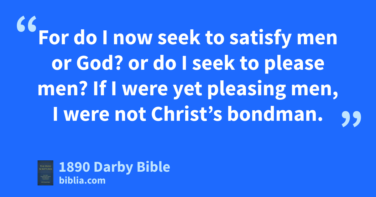 10 For do I now seek to satisfy men or God? or do I seek to please men? If I were yet pleasing men, I were not Christ’s bondman. 11 But I let you know, brethren, as to the glad tidings which were announced by me, that they are not according to man. 12 For neither did I receive them from man, neither was I taught them, but by revelation of Jesus Christ. 13 For ye have heard what was my conversation formerly in Judaism, that I excessively persecuted the assembly of God, and ravaged it; 14 and advanced in Judaism beyond many my contemporaries in my nation, being exceedingly zealous of the doctrines of my fathers. 15 But when God, who set me apart even from my mother’s womb, and called me by his grace, 16 was pleased to reveal his Son in me, that I may announce him as glad tidings among the nations, immediately I took not counsel with flesh and blood, 17 nor went I up to Jerusalem to those who were apostles before me; but I went to Arabia, and again returned to Damascus. 18 Then after three years I went up to Jerusalem to make acquaintance with Peter, and I remained with him fifteen days; 19 but I saw none other of the apostles, but James the brother of the Lord. 20 Now what I write to you, behold, before God, I do not lie. 21 Then I came into the regions of Syria and Cilicia. 22 But I was unknown personally to the assemblies of Judaea which are in Christ; 23 only they were hearing that he who persecuted us formerly now announces the glad tidings of the faith which formerly he ravaged: 24 and they glorified God in me.