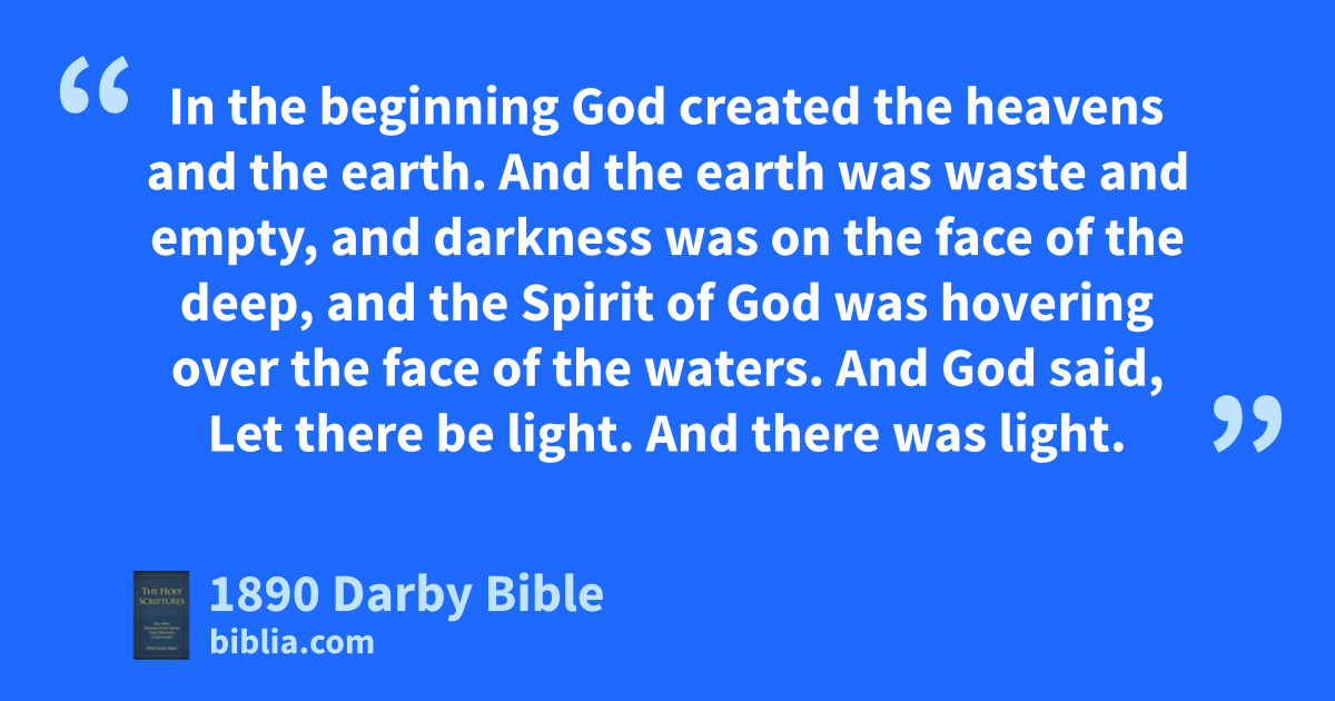 1 In the beginning God created the heavens and the earth. 2 And the earth was waste and empty, and darkness was on the face of the deep, and the Spirit of God was hovering over the face of the waters.