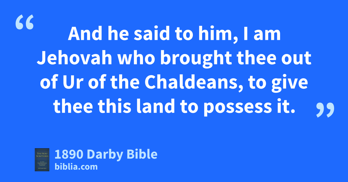 7 And he said to him, I am Jehovah who brought thee out of Ur of the Chaldeans, to give thee this land to possess it. 8 And he said, Lord Jehovah, how shall I know that I shall possess it? 9 And he said to him, Take me a heifer of three years old, and a she-goat of three years old, and a ram of three years old, and a turtle-dove, and a young pigeon. 10 And he took all these, and divided them in the midst, and laid the half of each opposite its fellow; but the birds he did not divide. 11 And the birds of prey came down on the carcases; and Abram scared them away.