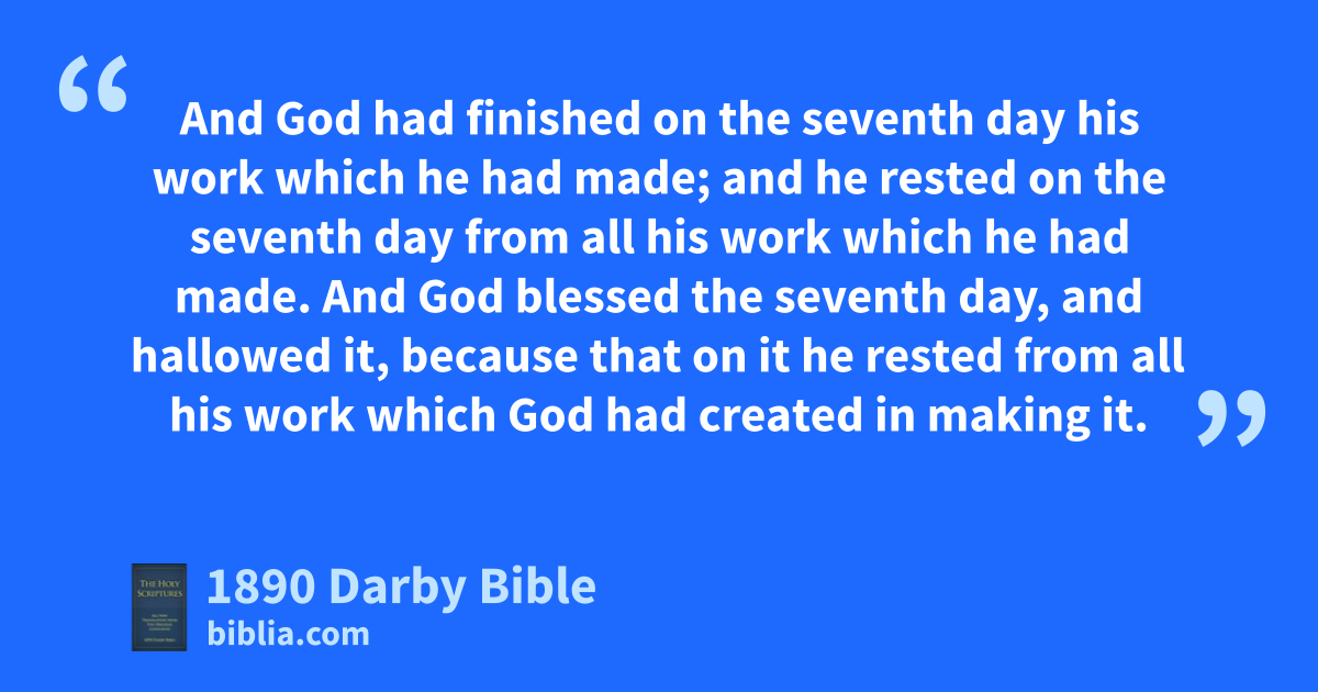 1 And the heavens and the earth and all their host were finished. 2 And God had finished on the seventh day his work which he had made; and he rested on the seventh day from all his work which he had made. 3 And God blessed the seventh day, and hallowed it, because that on it he rested from all his work which God had created in making it.