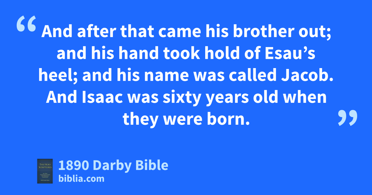 19 And these are the generations of Isaac, Abraham’s son. Abraham begot Isaac. 20 And Isaac was forty years old when he took Rebecca as wife, the daughter of Bethuel the Syrian of Padan-Aram, the sister of Laban the Syrian. 21 And Isaac entreated Jehovah for his wife, because she was barren; and Jehovah was entreated of him, and Rebecca his wife conceived. 22 And the children struggled together within her; and she said, If it be so, why am I thus? And she went to inquire of Jehovah. 23 And Jehovah said to her, Two nations are in thy womb, And two peoples shall be separated from thy bowels; And one people shall be stronger than the other people, And the elder shall serve the younger. 24 And when her days to be delivered were fulfilled, behold, there were twins in her womb. 25 And the first came out red—all over like a hairy garment; and they called his name Esau. 26 And after that came his brother out; and his hand took hold of Esau’s heel; and his name was called Jacob. And Isaac was sixty years old when they were born. 27 And the boys grew, and Esau became a man skilled in hunting, a man of the field; and Jacob was a homely man, dwelling in tents. 28 And Isaac loved Esau, because venison was to his taste; and Rebecca loved Jacob.