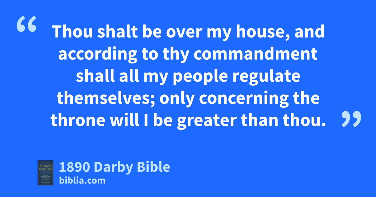 33 And now let Pharaoh look himself out a man discreet and wise, and set him over the land of Egypt. 34 Let Pharaoh do this: let him appoint overseers over the land, and take the fifth part of the land of Egypt during the seven years of plenty, 35 and let them gather all the food of these coming good years, and lay up corn under the hand of Pharaoh, for food in the cities, and keep it. 36 And let the food be as store for the land for the seven years of famine, which will be in the land of Egypt, that the land perish not through the famine. 37 And the word was good in the eyes of Pharaoh, and in the eyes of all his bondmen. 38 And Pharaoh said to his bondmen, Shall we find one as this, a man in whom the Spirit of God is? 39 And Pharaoh said to Joseph, Since God has made all this known to thee, there is none so discreet and wise as thou. 40 Thou shalt be over my house, and according to thy commandment shall all my people regulate themselves; only concerning the throne will I be greater than thou. 41 And Pharaoh said to Joseph, See, I have set thee over all the land of Egypt. 42 And Pharaoh took off his ring from his hand, and put it on Joseph’s hand, and arrayed him in clothes of byssus, and put a gold chain on his neck. 43 And he caused him to ride in the second chariot that he had; and they cried before him, Bow the knee! and he set him over all the land of Egypt. 44 And Pharaoh said to Joseph, I am Pharaoh; and without thee shall no man lift up his hand or his foot in all the land of Egypt. 45 And Pharaoh called Joseph’s name Zaphnath-paaneah, and gave him as wife Asnath the daughter of Potipherah the priest in On. And Joseph went out over the land of Egypt.