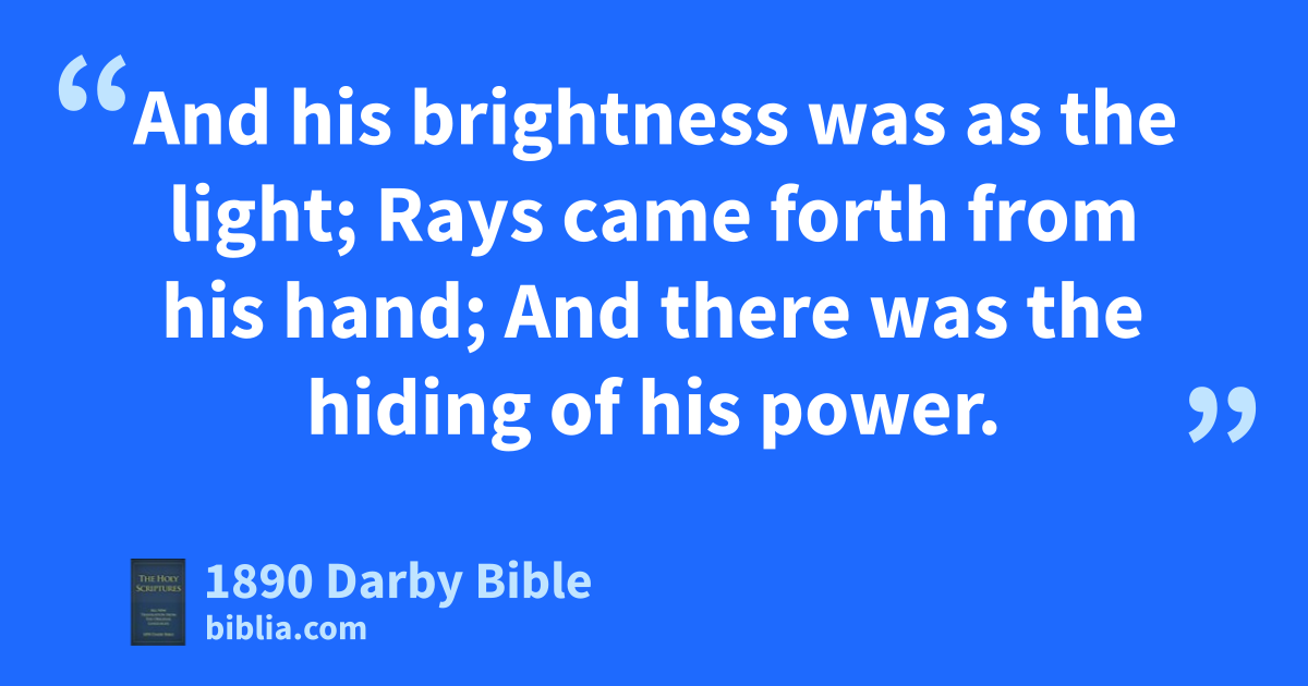3 †God came from Teman, And the Holy One from mount Paran. Selah. His glory covereth the heavens, And the earth is full of his praise. 4 And his brightness was as the light; Rays came forth from his hand; And there was the hiding of his power. 5 Before him went the pestilence, And a burning flame went forth at his feet. 6 He stood, and measured the earth; He beheld, and discomfited the nations; And the eternal mountains were scattered, The everlasting hills gave way: His ways are everlasting. 7 I saw the tents of Cushan in affliction; The curtains of the land of Midian did tremble. 8 Was Jehovah wrathful with the rivers? Was thine anger against the rivers? Was thy rage against the sea, That thou didst ride upon thy horses, Thy chariots of salvation? 9 Thy bow was made naked, The rods of discipline sworn according to thy word. Selah. Thou didst cleave the earth with rivers. 10 The mountains saw thee, they were in travail: Torrents of waters passed by; The deep uttered its voice, Lifted up its hands on high. 11 The sun and moon stood still in their habitation, At the light of thine arrows which shot forth, —At the shining of thy glittering spear. 12 Thou didst march through the land in indignation, Thou didst thresh the nations in anger. 13 Thou wentest forth for the salvation of thy people, For the salvation of thine anointed; Thou didst smite off the head from the house of the wicked, Laying bare the foundation even to the neck. Selah. 14 Thou didst strike through with his own spears the head of his leaders: They came out as a whirlwind to scatter me, Whose exulting was as to devour the afflicted secretly. 15 Thou didst walk through the sea with thy horses, The heap of great waters.