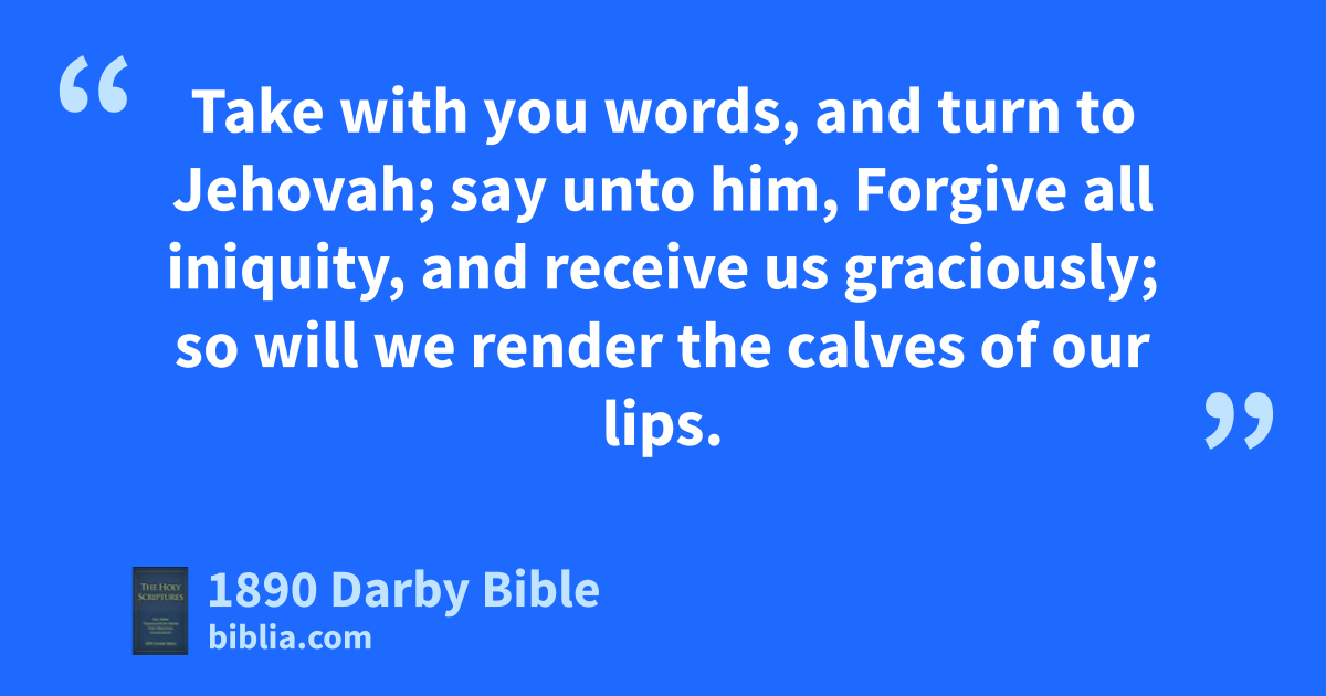 1 O Israel, return unto Jehovah thy God; for thou hast fallen by thine iniquity. 2 Take with you words, and turn to Jehovah; say unto him, Forgive all iniquity, and receive us graciously; so will we render the calves of our lips. 3 Assyria shall not save us; we will not ride upon horses: neither will we say any more to the work of our hands, Thou art our God; because in thee the fatherless findeth mercy.