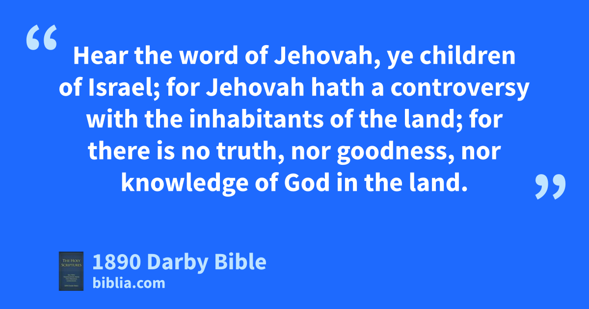 1 Hear the word of Jehovah, ye children of Israel; for Jehovah hath a controversy with the inhabitants of the land; for there is no truth, nor goodness, nor knowledge of God in the land. 2 Swearing, and lying, and killing, and stealing, and committing adultery, —they break out; and blood toucheth blood. 3 For this shall the land mourn, and every one that dwelleth therein shall languish, with the beasts of the field, and with the fowl of the heavens, yea, the fishes of the sea also shall be taken away. 4 Yet let no man strive, and let no man reprove; for thy people are as they that strive with the priest. 5 And thou shalt stumble by day; and the prophet also shall stumble with thee by night: and I will destroy thy mother.
