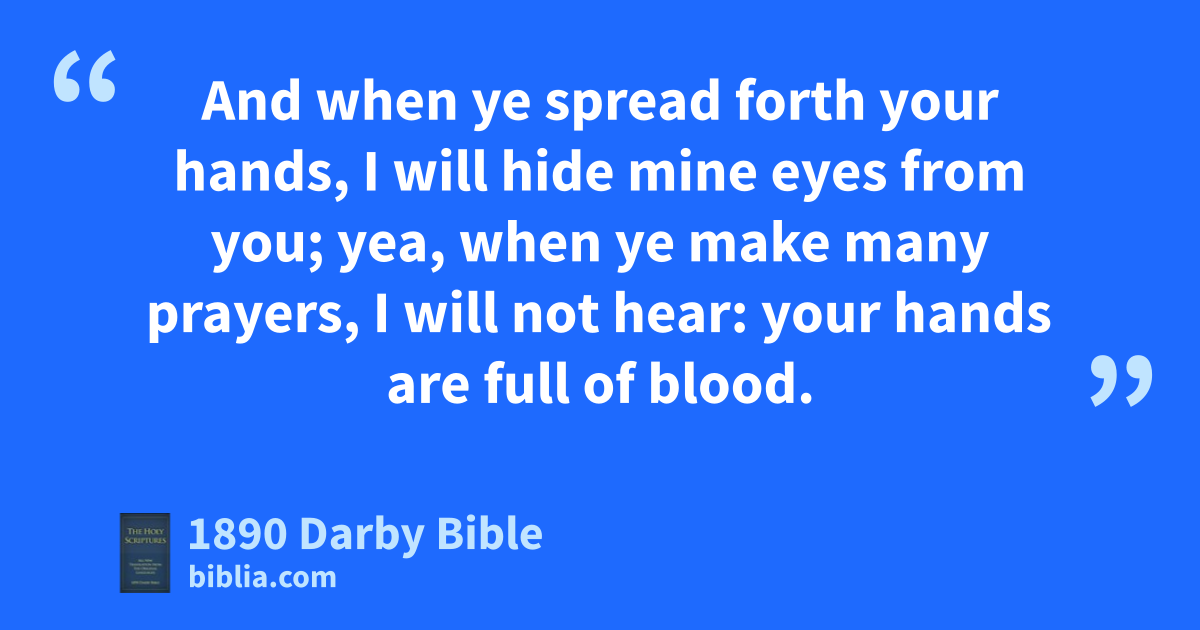 10 Hear the word of Jehovah, rulers of Sodom; give ear unto the law of our God, people of Gomorrah! 11 To what purpose is the multitude of your sacrifices unto me? saith Jehovah. I am sated with burnt-offerings of rams, and the fat of fed beasts; and in the blood of bullocks, and of lambs, and of he-goats I take no pleasure. 12 When ye come to appear before me, who hath required this from your hand—to tread my courts? 13 Bring no more vain oblations! Incense is an abomination unto me, —new moon and sabbath, the calling of convocations—wickedness and the solemn meeting I cannot bear. 14 Your new moons and your set feasts my soul hateth: they are a burden to me; I am wearied of bearing them. 15 And when ye spread forth your hands, I will hide mine eyes from you; yea, when ye make many prayers, I will not hear: your hands are full of blood.