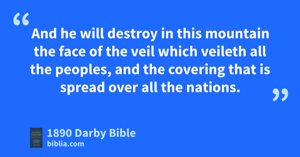 6 And in this mountain will Jehovah of hosts make unto all peoples a feast of fat things, a feast of wines on the lees, of fat things full of marrow, of wines on the lees well refined. 7 And he will destroy in this mountain the face of the veil which veileth all the peoples, and the covering that is spread over all the nations. 8 He will swallow up death in victory. And the Lord Jehovah will wipe away tears from off all faces; and the reproach of his people will he take away from off all the earth: for Jehovah hath spoken.