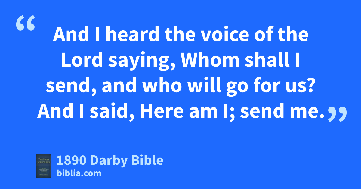 5 And I said, Woe unto me! for I am undone; for I am a man of unclean lips, and I dwell in the midst of a people of unclean lips: for mine eyes have seen the King, Jehovah of hosts. 6 And one of the seraphim flew unto me, and he had in his hand a glowing coal, which he had taken with the tongs from off the altar; 7 and he made it touch my mouth, and said, Behold, this hath touched thy lips; and thine iniquity is taken away, and thy sin expiated. 8 And I heard the voice of the Lord saying, Whom shall I send, and who will go for us? And I said, Here am I; send me.