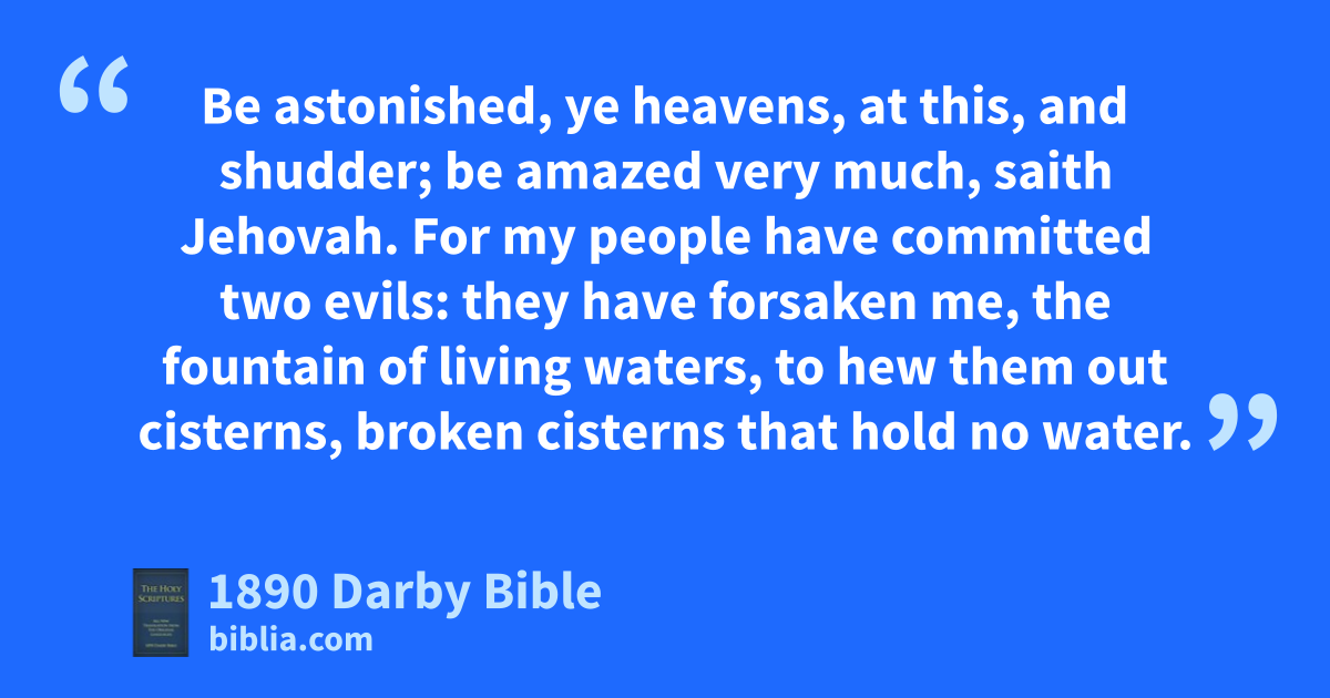 9 Therefore will I yet plead with you, saith Jehovah, and with your children’s children will I plead. 10 For pass over to the isles of Chittim, and see; and send unto Kedar, and consider diligently, and see if there have been such a thing. 11 Hath a nation changed its gods? and they are no gods; —but my people have changed their glory for that which doth not profit. 12 Be astonished, ye heavens, at this, and shudder; be amazed very much, saith Jehovah. 13 For my people have committed two evils: they have forsaken me, the fountain of living waters, to hew them out cisterns, broken cisterns that hold no water.