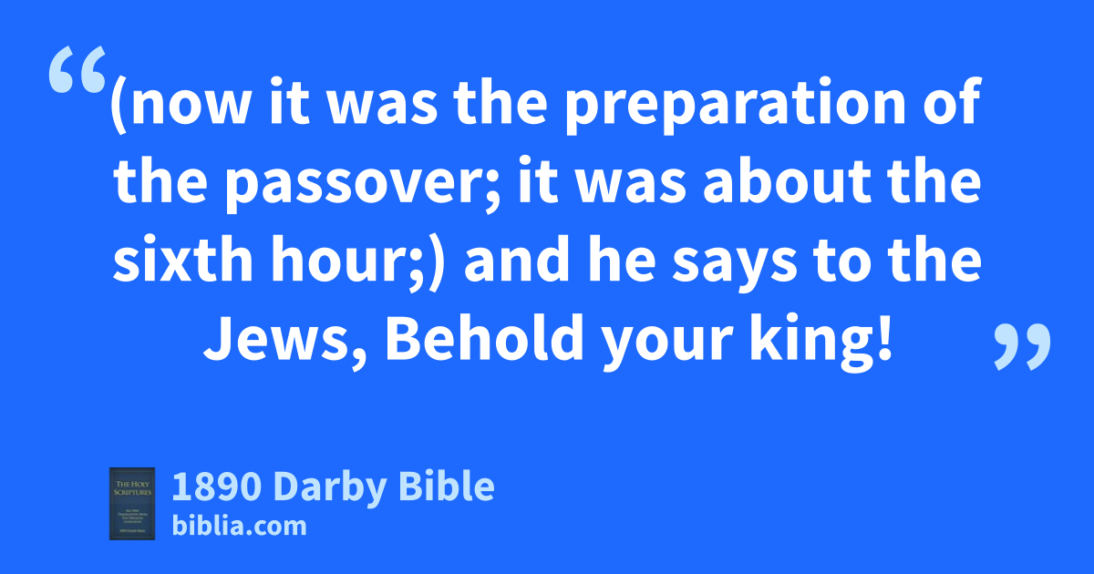 1 Then Pilate therefore took Jesus and scourged him. 2 And the soldiers having plaited a crown of thorns put it on his head, and put a purple robe on him, 3 and came to him and said, Hail, king of the Jews! and gave him blows on the face. 4 And Pilate went out again and says to them, Lo, I bring him out to you, that ye may know that I find in him no fault whatever. 5 (Jesus therefore went forth without, wearing the crown of thorn, and the purple robe.) And he says to them, Behold the man! 6 When therefore the chief priests and the officers saw him they cried out saying, Crucify, crucify him. Pilate says to them, Take him ye and crucify him, for I find no fault in him. 7 The Jews answered him, We have a law, and according to our law he ought to die, because he made himself Son of God. 8 When Pilate therefore heard this word, he was the rather afraid, 9 and went into the praetorium again and says to Jesus, Whence art thou? But Jesus gave him no answer. 10 Pilate therefore says to him, Speakest thou not to me? Dost thou not know that I have authority to release thee and have authority to crucify thee? 11 Jesus answered, Thou hadst no authority whatever against me if it were not given to thee from above. On this account he that has delivered me up to thee has the greater sin. 12 From this time Pilate sought to release him; but the Jews cried out saying, If thou releasest this man, thou art not a friend to Caesar. Every one making himself a king speaks against Caesar. 13 Pilate therefore, having heard these words, led Jesus out and sat down upon the judgment-seat, at a place called Pavement, but in Hebrew Gabbatha; 14 (now it was the preparation of the passover; it was about the sixth hour;) and he says to the Jews, Behold your king! 15 But they cried out, Take him away, take him away, crucify him. Pilate says to them, Shall I crucify your king? The chief priests answered, We have no king but Caesar.