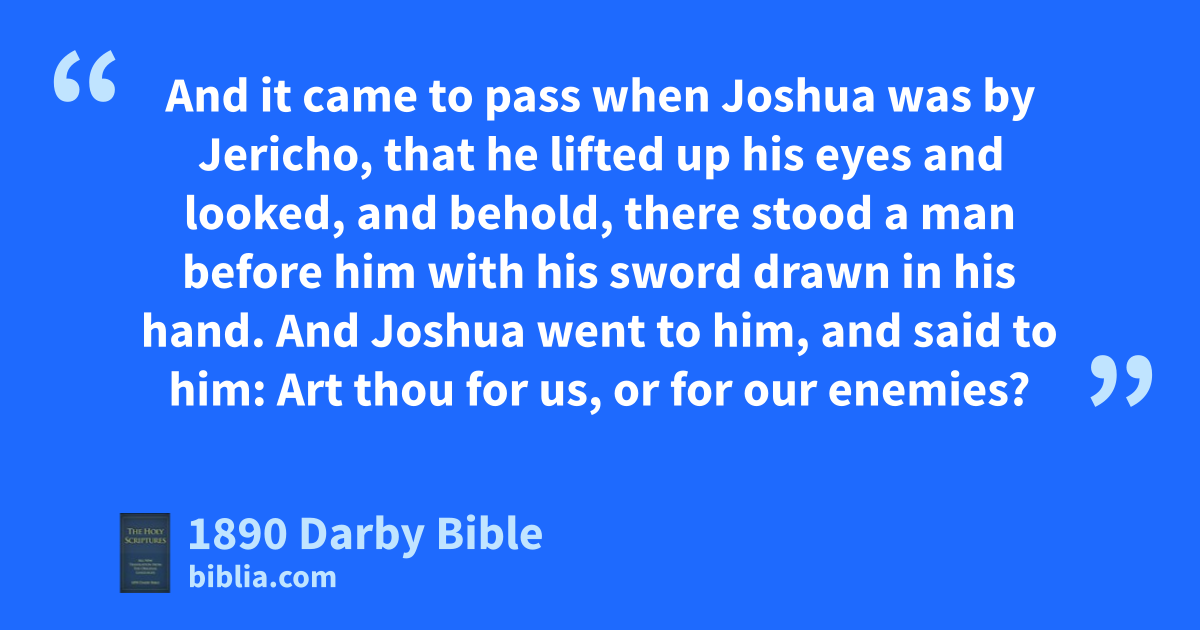 13 And it came to pass when Joshua was by Jericho, that he lifted up his eyes and looked, and behold, there stood a man before him with his sword drawn in his hand. And Joshua went to him, and said to him: Art thou for us, or for our enemies? 14 And he said, No; for as captain of the army of Jehovah am I now come. Then Joshua fell upon his face to the earth, and worshipped, and said to him, What saith my lord unto his servant? 15 And the captain of Jehovah’s army said to Joshua, Loose thy sandal from off thy foot: for the place whereon thou standest is holy. And Joshua did so.