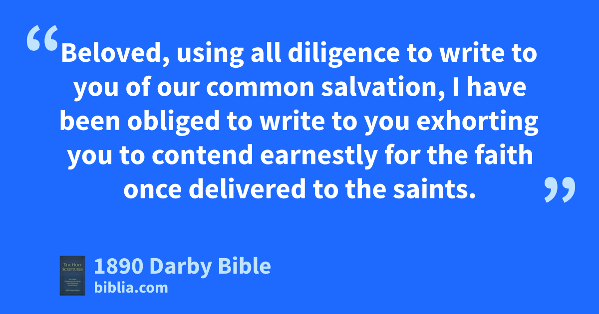 3 Beloved, using all diligence to write to you of our common salvation, I have been obliged to write to you exhorting you to contend earnestly for the faith once delivered to the saints. 4 For certain men have got in unnoticed, they who of old were marked out beforehand to this sentence, ungodly persons, turning the grace of our God into dissoluteness, and denying our only Master and Lord Jesus Christ. 5 But I would put you in remembrance, you who once knew all things, that the Lord, having saved a people out of the land of Egypt, in the second place destroyed those who had not believed. 6 And angels who had not kept their own original state, but had abandoned their own dwelling, he keeps in eternal chains under gloomy darkness, to the judgment of the great day; 7 as Sodom and Gomorrha, and the cities around them, committing greedily fornication, in like manner with them, and going after other flesh, lie there as an example, undergoing the judgment of eternal fire.