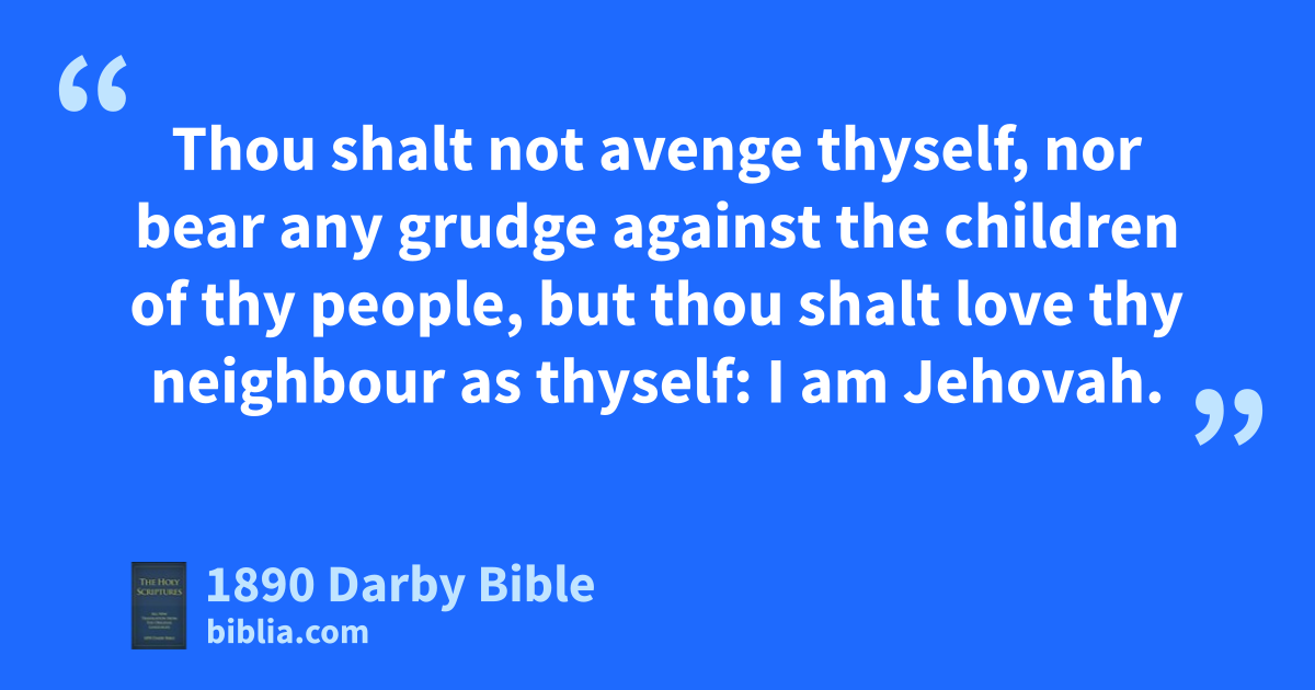 11 Ye shall not steal, and ye shall not deal falsely, and ye shall not lie one to another. 12 And ye shall not swear by my name falsely, and profane the name of thy God: I am Jehovah. 13 Thou shalt not oppress thy neighbour, neither rob him. The wages of the hired servant shall not abide with thee all night until the morning. 14 Thou shalt not revile a deaf person, and thou shalt not put a stumbling-block before a blind one; but thou shalt fear thy God: I am Jehovah. 15 Ye shall do no unrighteousness in judgment; thou shalt not respect the person of the lowly, nor honour the person of the great; in righteousness shalt thou judge thy neighbour. 16 Thou shalt not go about as a talebearer among thy people; thou shalt not stand up against the life of thy neighbour: I am Jehovah. 17 Thou shalt not hate thy brother in thy heart; thou shalt earnestly rebuke thy neighbour, lest thou bear sin on account of him. 18 Thou shalt not avenge thyself, nor bear any grudge against the children of thy people, but thou shalt love thy neighbour as thyself: I am Jehovah.