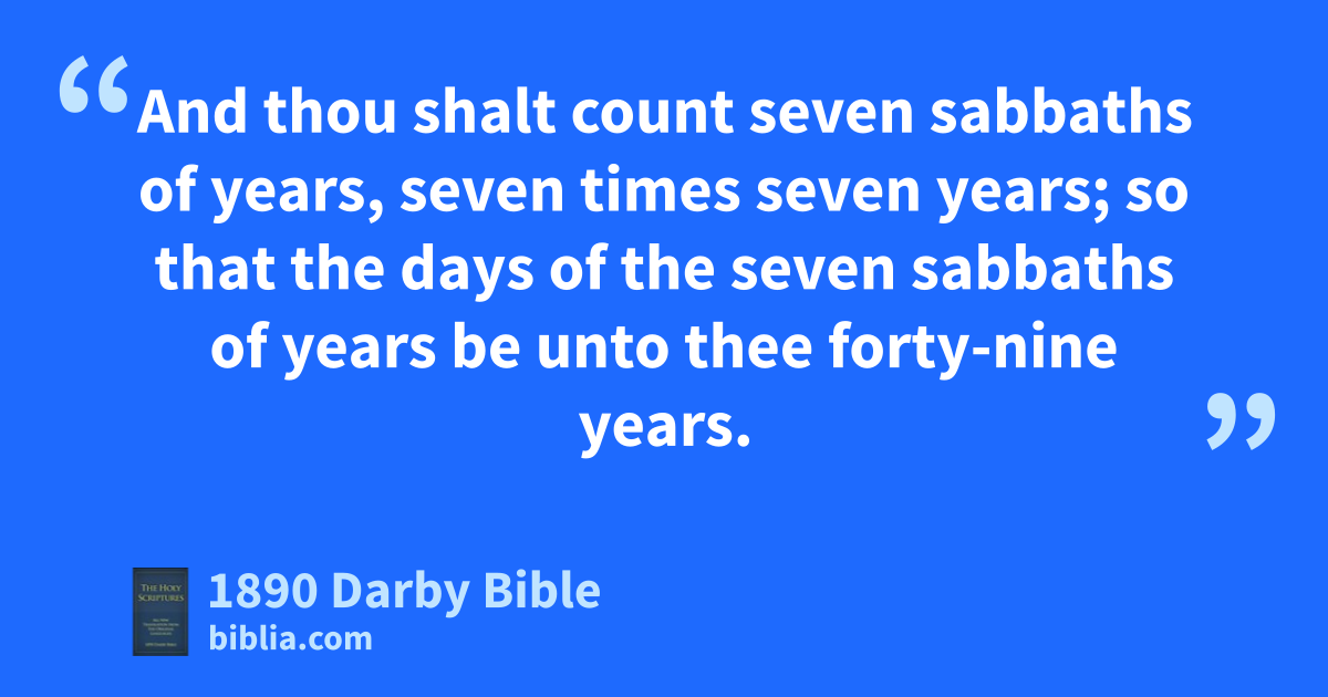 8 And thou shalt count seven sabbaths of years, seven times seven years; so that the days of the seven sabbaths of years be unto thee forty-nine years. 9 Then shalt thou cause the loud sound of the trumpet to go forth in the seventh month, on the tenth of the month; on the day of atonement shall ye cause the trumpet to go forth throughout your land. 10 And ye shall hallow the year of the fiftieth year, and proclaim liberty in the land unto all the inhabitants thereof; a year of jubilee shall it be unto you, and ye shall return every man unto his possession, and ye shall return every man unto his family; 11 a year of jubilee shall that fiftieth year be unto you: ye shall not sow, neither reap its aftergrowth, nor gather the fruit of its undressed vines. 12 For it is the jubilee; it shall be holy unto you; out of the field shall ye eat its produce. 13 In this year of the jubilee ye shall return every man unto his possession. 14 And if ye sell ought unto your neighbour, or buy of your neighbour’s hand, ye shall not overreach one another. 15 According to the number of years since the jubilee, thou shalt buy of thy neighbour; according to the number of years of the produce, he shall sell unto thee. 16 According to the greater number of the years, thou shalt increase the price thereof; and according to the fewness of years, thou shalt diminish the price of it; for it is the number of crops that he selleth unto thee. 17 And ye shall not oppress one another; but thou shalt fear thy God; for I am Jehovah your God. 18 And ye shall do my statutes, and observe mine ordinances and do them: thus shall ye dwell in your land securely. 19 And the land shall yield its fruit, and ye shall eat and be satisfied, and dwell therein securely. 20 And if ye say, What shall we eat in the seventh year? behold, we may not sow, nor gather in our produce; 21 then I will command my blessing upon you in the sixth year, that it may bring forth produce for three years; 22 and ye shall sow in the eighth year, and ye shall eat of the old fruit until the ninth year; until her produce come in, ye shall eat the old.