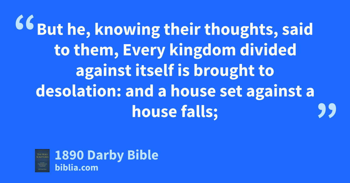 14 And he was casting out a demon, and it was dumb; and it came to pass, the demon being gone out, the dumb man spoke. And the crowds wondered. 15 But some from among them said, By Beelzebub the prince of the demons casts he out demons. 16 And others tempting him sought from him a sign out of heaven. 17 But he, knowing their thoughts, said to them, Every kingdom divided against itself is brought to desolation: and a house set against a house falls; 18 and if also Satan is divided against himself, how shall his kingdom subsist? because ye say that I cast out demons by Beelzebub. 19 But if I by Beelzebub cast out demons, your sons—by whom do they cast them out? For this reason they shall be your judges. 20 But if by the finger of God I cast out demons, then the kingdom of God is come upon you. 21 When the strong man armed keeps his own house, his goods are in peace; 22 but when the stronger than he coming upon him overcomes him, he takes away his panoply in which he trusted, and he will divide the spoil he has taken from him. 23 He that is not with me is against me, and he that gathers not with me scatters. 24 When the unclean spirit has gone out of the man, he goes through dry places seeking rest; and not finding any he says, I will return to my house whence I came out. 25 And having come, he finds it swept and adorned. 26 Then he goes and takes seven other spirits worse than himself, and entering in, they dwell there; and the last condition of that man becomes worse than the first.