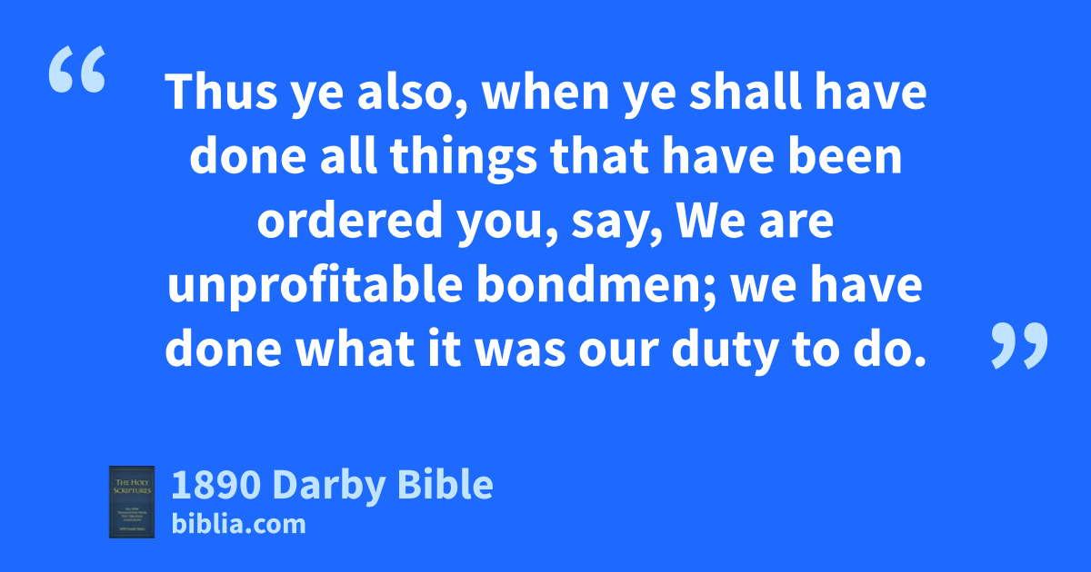 1 And he said to his disciples, It cannot be but that offences come, but woe to him by whom they come! 2 It would be more profitable for him if a millstone were hanged about his neck and he cast into the sea, than that he should be a snare to one of these little ones. 3 Take heed to yourselves: if thy brother should sin, rebuke him; and if he should repent, forgive him. 4 And if he should sin against thee seven times in the day, and seven times should return to thee, saying, I repent, thou shalt forgive him. 5 And the apostles said to the Lord, Give more faith to us. 6 But the Lord said, If ye have faith as a grain of mustard seed, ye had said to this sycamine tree, Be thou rooted up, and be thou planted in the sea, and it would have obeyed you. 7 But which of you is there who, having a bondman ploughing or shepherding, when he comes in out of the field, will say, Come and lie down immediately to table? 8 But will he not say to him, Prepare what I shall sup on, and gird thyself and serve me that I may eat and drink; and after that thou shalt eat and drink? 9 Is he thankful to the bondman because he has done what was ordered? I judge not. 10 Thus ye also, when ye shall have done all things that have been ordered you, say, We are unprofitable bondmen; we have done what it was our duty to do.