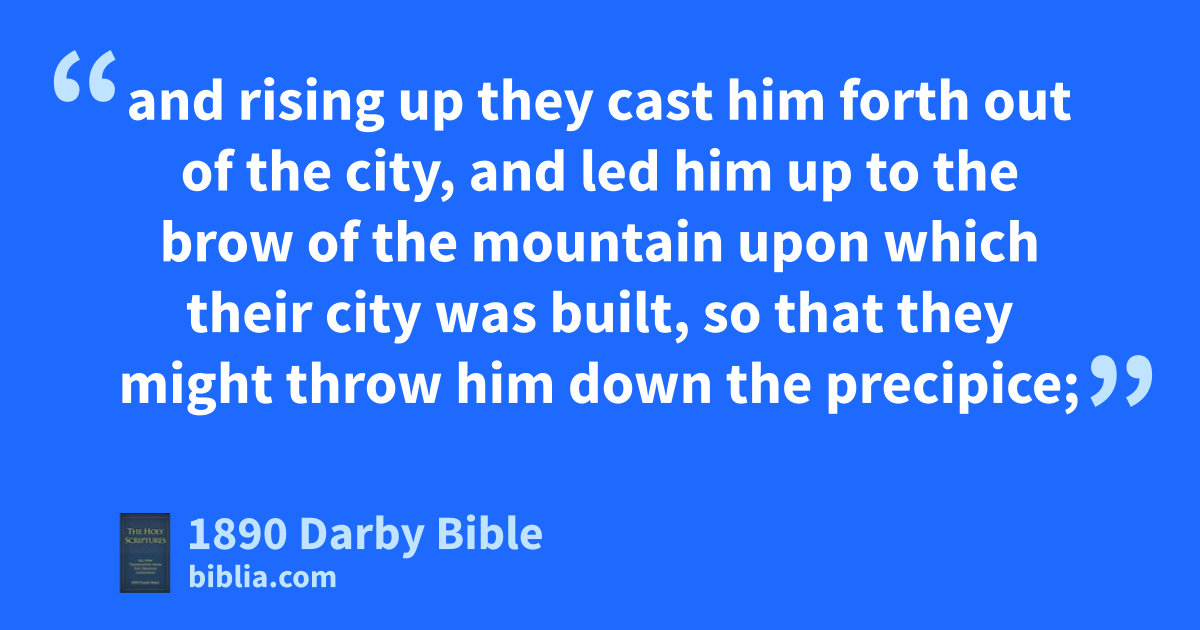 14 And Jesus returned in the power of the Spirit to Galilee; and a rumour went out into the whole surrounding country about him; 15 and he taught in their synagogues, being glorified of all. 16 And he came to Nazareth, where he was brought up; and he entered, according to his custom, into the synagogue on the sabbath day, and stood up to read. 17 And the book of the prophet Esaias was given to him; and having unrolled the book he found the place where it was written, 18 The Spirit of the Lord is upon me, because he has anointed me to preach glad tidings to the poor; he has sent me to preach to captives deliverance, and to the blind sight, to send forth the crushed delivered, 19 to preach the acceptable year of the Lord. 20 And having rolled up the book, when he had delivered it up to the attendant, he sat down; and the eyes of all in the synagogue were fixed upon him. 21 And he began to say to them, To-day this scripture is fulfilled in your ears. 22 And all bore witness to him, and wondered at the words of grace which were coming out of his mouth. And they said, Is not this the son of Joseph? 23 And he said to them, Ye will surely say to me this parable, Physician, heal thyself; whatsoever we have heard has taken place in Capernaum do here also in thine own country. 24 And he said, Verily I say to you, that no prophet is acceptable in his own country. 25 But of a truth I say to you, There were many widows in Israel in the days of Elias, when the heaven was shut up for three years and six months, so that a great famine came upon all the land, 26 and to none of them was Elias sent but to Sarepta of Sidonia, to a woman that was a widow. 27 And there were many lepers in Israel in the time of Elisha the prophet, and none of them was cleansed but Naaman the Syrian. 28 And they were all filled with rage in the synagogue, hearing these things; 29 and rising up they cast him forth out of the city, and led him up to the brow of the mountain upon which their city was built, so that they might throw him down the precipice; 30 but he, passing through the midst of them, went his way,