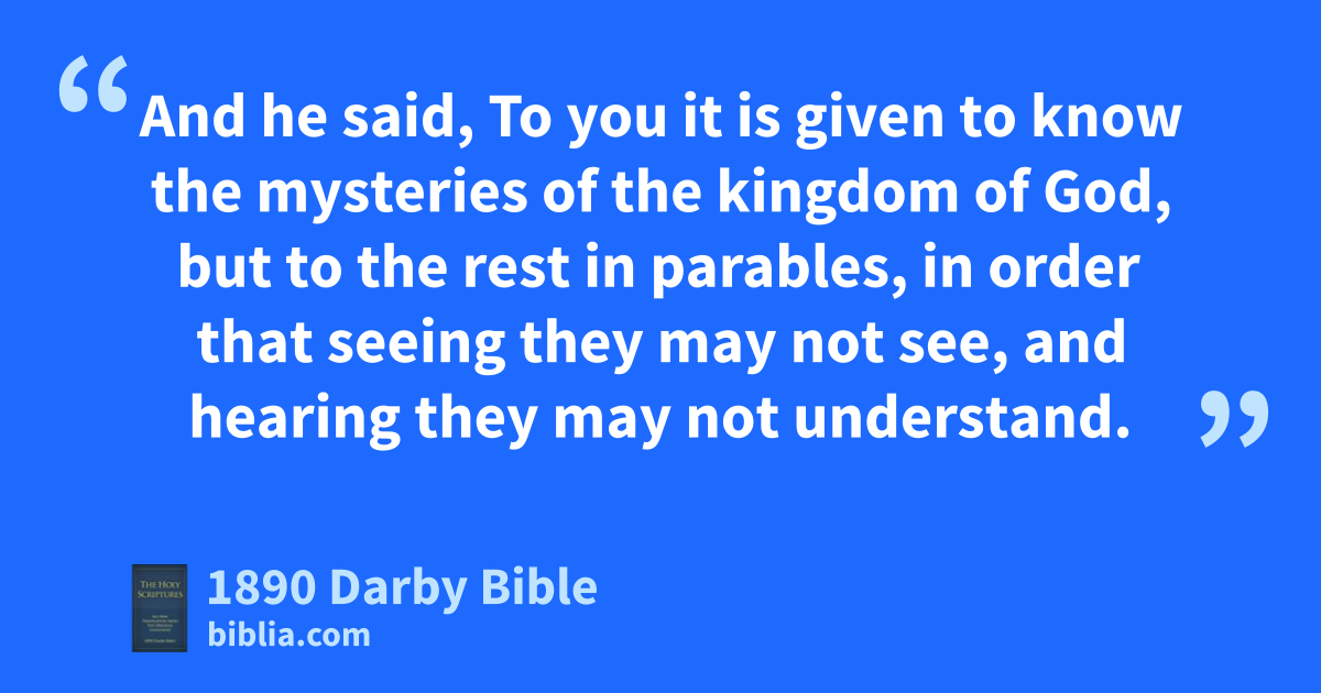 4 And a great crowd coming together, and those who were coming to him out of each city, he spoke by parable: 5 The sower went out to sow his seed; and as he sowed, some fell along the way, and it was trodden under foot, and the birds of the heaven devoured it up; 6 and other fell upon the rock, and having sprung up, it was dried up because it had not moisture; 7 and other fell in the midst of the thorns, and the thorns having sprung up with it choked it; 8 and other fell into the good ground, and having sprung up bore fruit a hundredfold. As he said these things he cried, He that has ears to hear, let him hear. 9 And his disciples asked him saying, What may this parable be? 10 And he said, To you it is given to know the mysteries of the kingdom of God, but to the rest in parables, in order that seeing they may not see, and hearing they may not understand. 11 But the parable is this: The seed is the word of God. 12 But those by the wayside are those who hear; then comes the devil and takes away the word from their heart that they may not believe and be saved. 13 But those upon the rock, those who when they hear receive the word with joy; and these have no root, who believe for a time, and in time of trial fall away. 14 But that that fell where the thorns were, these are they who having heard go away and are choked under cares and riches and pleasures of life, and bring no fruit to perfection. 15 But that in the good ground, these are they who in an honest and good heart, having heard the word keep it, and bring forth fruit with patience. 16 And no one having lighted a lamp covers it with a vessel or puts it under a couch, but sets it on a lamp-stand, that they who enter in may see the light. 17 For there is nothing hid which shall not become manifest, nor secret which shall not be known and come to light. 18 Take heed therefore how ye hear; for whosoever has, to him shall be given, and whosoever has not, even what he seems to have shall be taken from him. 19 And his mother and his brethren came to him, and could not get to him because of the crowd. 20 And it was told him saying, Thy mother and thy brethren stand without, wishing to see thee. 21 But he answering said to them, My mother and my brethren are those who hear the word of God and do it.