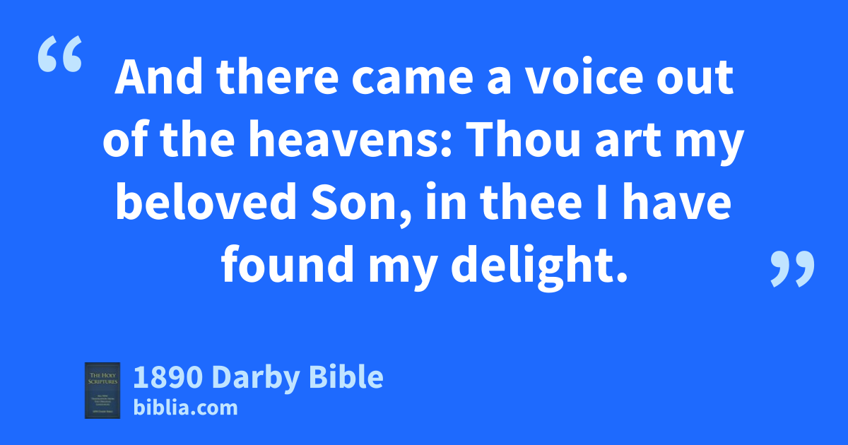 9 And it came to pass in those days that Jesus came from Nazareth of Galilee, and was baptised by John at the Jordan. 10 And straightway going up from the water, he saw the heavens parting asunder, and the Spirit, as a dove, descending upon him. 11 And there came a voice out of the heavens: Thou art my beloved Son, in thee I have found my delight. 12 And immediately the Spirit drives him out into the wilderness. 13 And he was in the wilderness forty days tempted by Satan, and was with the wild beasts; and the angels ministered to him.