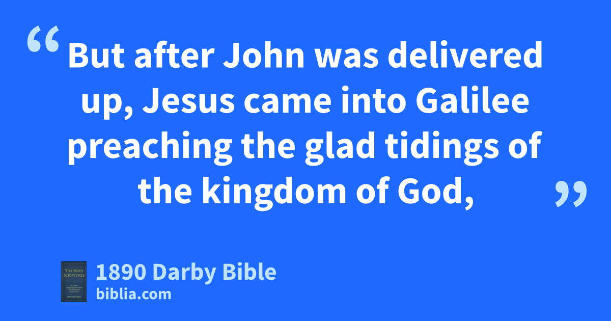 14 But after John was delivered up, Jesus came into Galilee preaching the glad tidings of the kingdom of God, 15 and saying, The time is fulfilled and the kingdom of God has drawn nigh; repent and believe in the glad tidings. 16 And walking by the sea of Galilee, he saw Simon, and Andrew, Simon’s brother, casting out a net in the sea, for they were fishers. 17 And Jesus said to them, Come after me, and I will make you become fishers of men; 18 and straightway leaving their trawl-nets they followed him. 19 And going on thence a little, he saw James the son of Zebedee, and John his brother, and these were in the ship repairing the trawl-nets; 20 and straightway he called them; and leaving their father Zebedee in the ship with the hired servants, they went away after him. 21 And they go into Capernaum. And straightway on the sabbath he entered into the synagogue and taught. 22 And they were astonished at his doctrine, for he taught them as having authority, and not as the scribes.