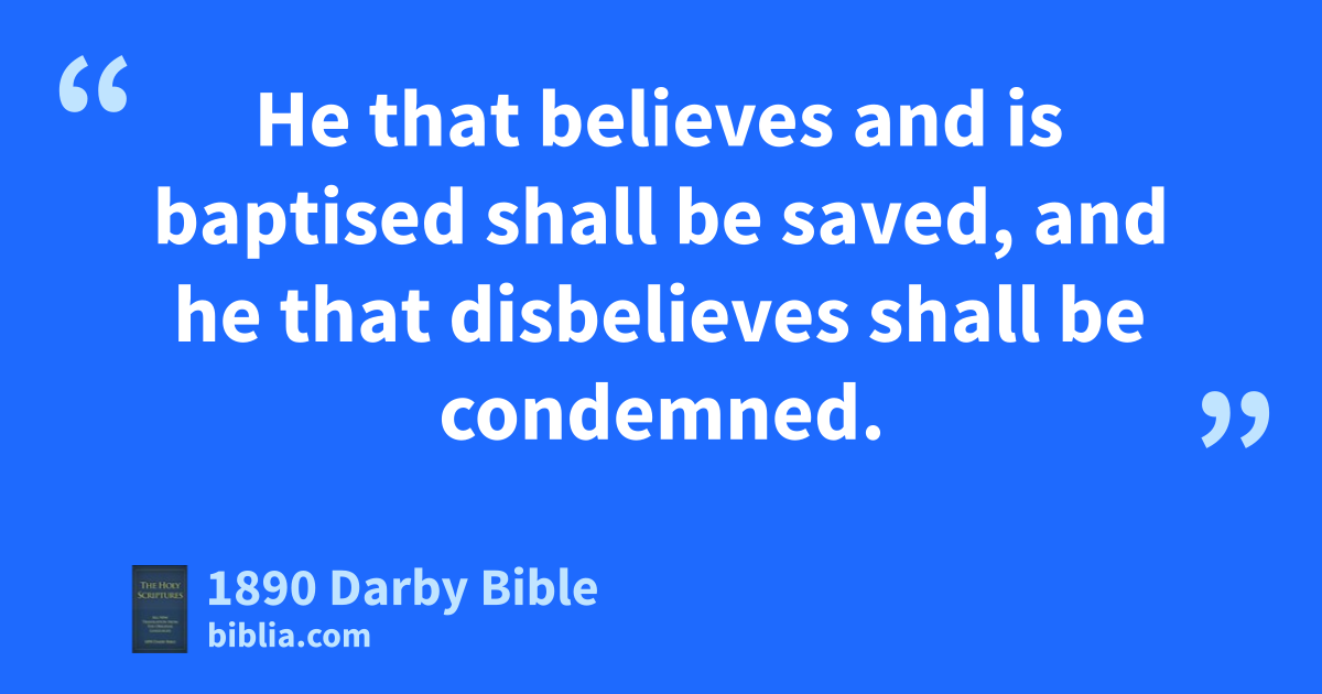 14 Afterwards as they lay at table he was manifested to the eleven, and reproached them with their unbelief and hardness of heart, because they had not believed those who had seen him risen. 15 And he said to them, Go into all the world, and preach the glad tidings to all the creation. 16 He that believes and is baptised shall be saved, and he that disbelieves shall be condemned. 17 And these signs shall follow those that have believed: in my name they shall cast out demons; they shall speak with new tongues; 18 they shall take up serpents; and if they should drink any deadly thing it shall not injure them; they shall lay hands upon the infirm, and they shall be well.