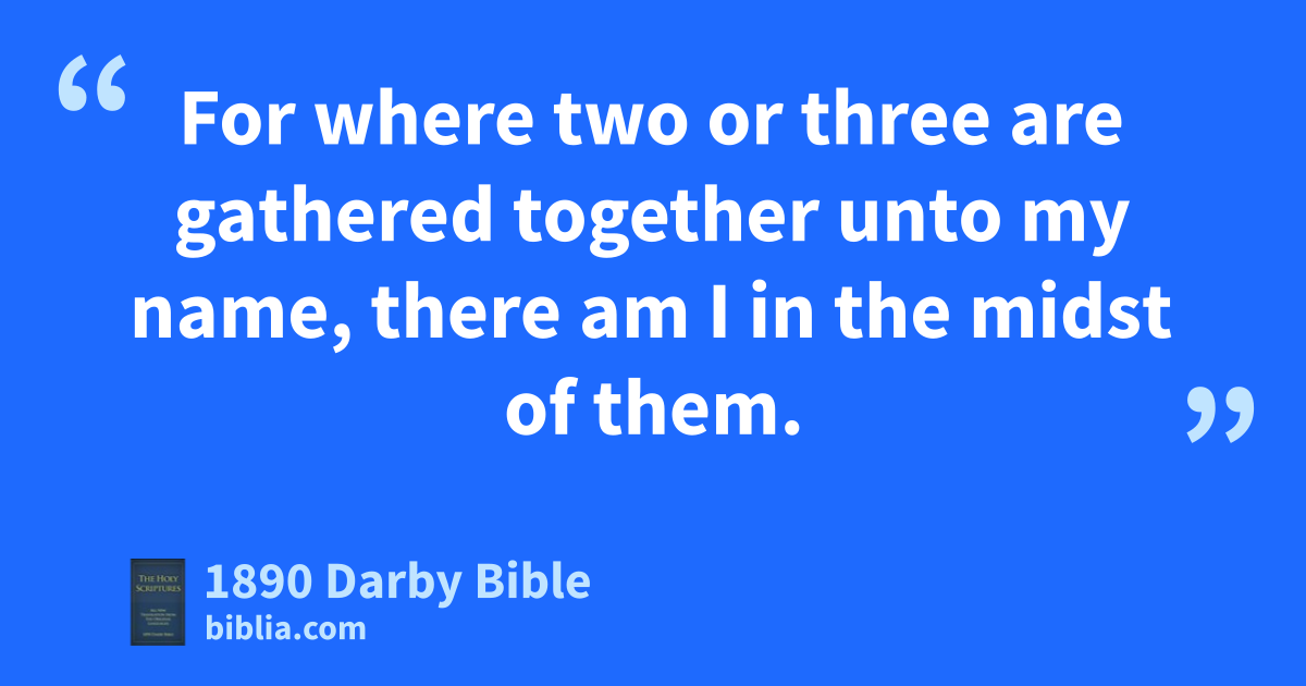15 But if thy brother sin against thee, go, reprove him between thee and him alone. If he hear thee, thou hast gained thy brother. 16 But if he do not hear thee, take with thee one or two besides, that every matter may stand upon the word of two witnesses or of three. 17 But if he will not listen to them, tell it to the assembly; and if also he will not listen to the assembly, let him be to thee as one of the nations and a tax-gatherer. 18 Verily I say to you, Whatsoever ye shall bind on the earth shall be bound in heaven, and whatsoever ye shall loose on the earth shall be loosed in heaven. 19 Again I say to you, that if two of you shall agree on the earth concerning any matter, whatsoever it may be that they shall ask, it shall come to them from my Father who is in the heavens. 20 For where two or three are gathered together unto my name, there am I in the midst of them.
