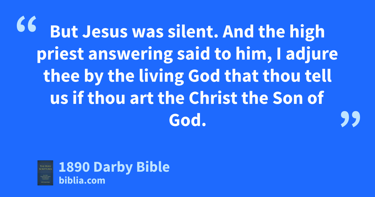 57 Now they that had seized Jesus led him away to Caiaphas the high priest, where the scribes and the elders were assembled. 58 And Peter followed him at a distance, even to the palace of the high priest, and entering in sat with the officers to see the end. 59 And the chief priests and the elders and the whole sanhedrim sought false witness against Jesus, so that they might put him to death. 60 And they found none, though many false witnesses came forward. But at the last two false witnesses came forward 61 and said, He said, I am able to destroy the temple of God, and in three days build it. 62 And the high priest standing up said to him, Answerest thou nothing? What do these witness against thee? 63 But Jesus was silent. And the high priest answering said to him, I adjure thee by the living God that thou tell us if thou art the Christ the Son of God. 64 Jesus says to him, Thou hast said. Moreover, I say to you, From henceforth ye shall see the Son of man sitting at the right hand of power, and coming on the clouds of heaven. 65 Then the high priest rent his clothes, saying, He has blasphemed: what need have we any more of witnesses? behold, now ye have heard the blasphemy. 66 What think ye? And they answering said, He is liable to the penalty of death. 67 Then they spit in his face, and buffeted him, and some struck him with the palms of their hand, 68 saying, Prophesy to us, Christ, Who is it who struck thee?