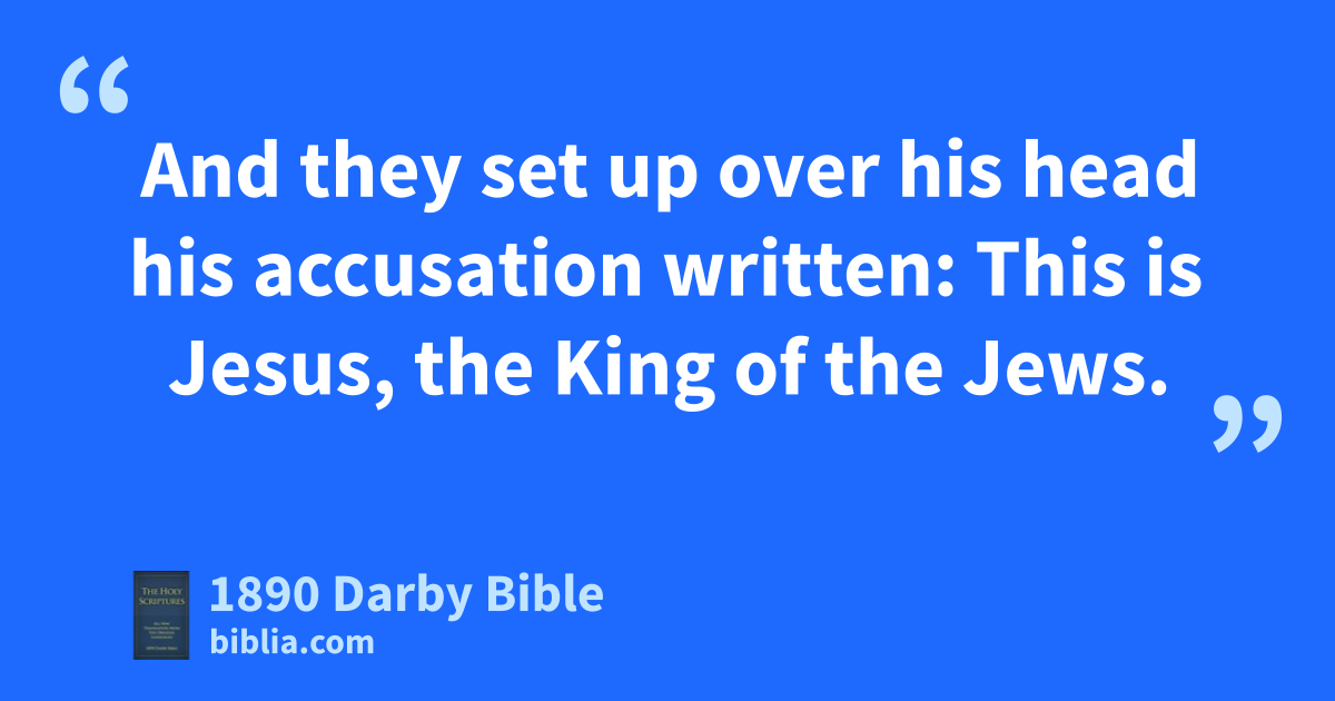 33 And having come to a place called Golgotha, which means Place of a skull, 34 they gave to him to drink vinegar mingled with gall; and having tasted it, he would not drink. 35 And having crucified him, they parted his clothes amongst themselves, casting lots. 36 And sitting down, they kept guard over him there. 37 And they set up over his head his accusation written: This is Jesus, the King of the Jews. 38 Then are crucified with him two robbers, one on the right hand and one on the left. 39 But the passers-by reviled him, shaking their heads 40 and saying, Thou that destroyest the temple and buildest it in three days, save thyself. If thou art Son of God, descend from the cross. 41 And in like manner the chief priests also, mocking, with the scribes and elders, said, 42 He saved others, himself he cannot save. He is King of Israel: let him descend now from the cross, and we will believe on him. 43 He trusted upon God; let him save him now if he will have him. For he said, I am Son of God. 44 And the robbers also who had been crucified with him cast the same reproaches on him. 45 Now from the sixth hour there was darkness over the whole land until the ninth hour; 46 but about the ninth hour Jesus cried out with a loud voice, saying, Eli, Eli, lama sabachthani? that is, My God, my God, why hast thou forsaken me? 47 And some of those who stood there, when they heard it, said, This man calls for Elias. 48 And immediately one of them running and getting a sponge, having filled it with vinegar and fixed it on a reed, gave him to drink. 49 But the rest said, Let be; let us see if Elias comes to save him.