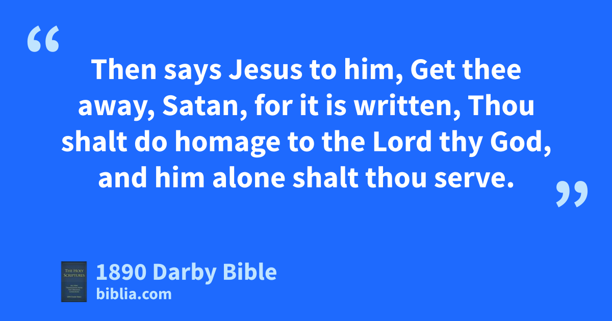 1 Then Jesus was carried up into the wilderness by the Spirit to be tempted of the devil: 2 and having fasted forty days and forty nights, afterwards he hungered. 3 And the tempter coming up to him said, If thou be Son of God, speak, that these stones may become loaves of bread. 4 But he answering said, It is written, Man shall not live by bread alone, but by every word which goes out through God’s mouth. 5 Then the devil takes him to the holy city, and sets him upon the edge of the temple, 6 and says to him, If thou be Son of God cast thyself down; for it is written, He shall give charge to his angels concerning thee, and on their hands shall they bear thee, lest in anywise thou strike thy foot against a stone. 7 Jesus said to him, It is again written, Thou shalt not tempt the Lord thy God. 8 Again the devil takes him to a very high mountain, and shews him all the kingdoms of the world, and their glory, 9 and says to him, All these things will I give thee if, falling down, thou wilt do me homage. 10 Then says Jesus to him, Get thee away, Satan, for it is written, Thou shalt do homage to the Lord thy God, and him alone shalt thou serve. 11 Then the devil leaves him, and behold, angels came and ministered to him.
