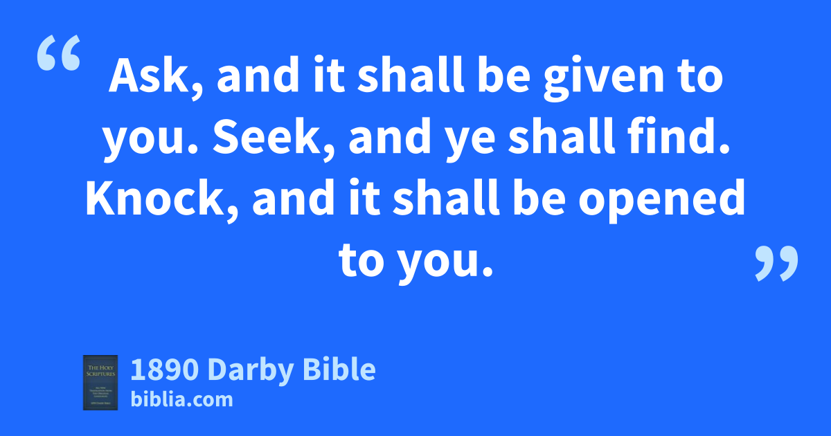 7 Ask, and it shall be given to you. Seek, and ye shall find. Knock, and it shall be opened to you. 8 For every one that asks receives; and he that seeks finds; and to him that knocks it shall be opened. 9 Or what man is there of you who, if his son shall ask of him a loaf of bread, will give him a stone; 10 and if he ask a fish, will give him a serpent? 11 If therefore ye, being wicked, know how to give good gifts to your children, how much rather shall your Father who is in the heavens give good things to them that ask of him?