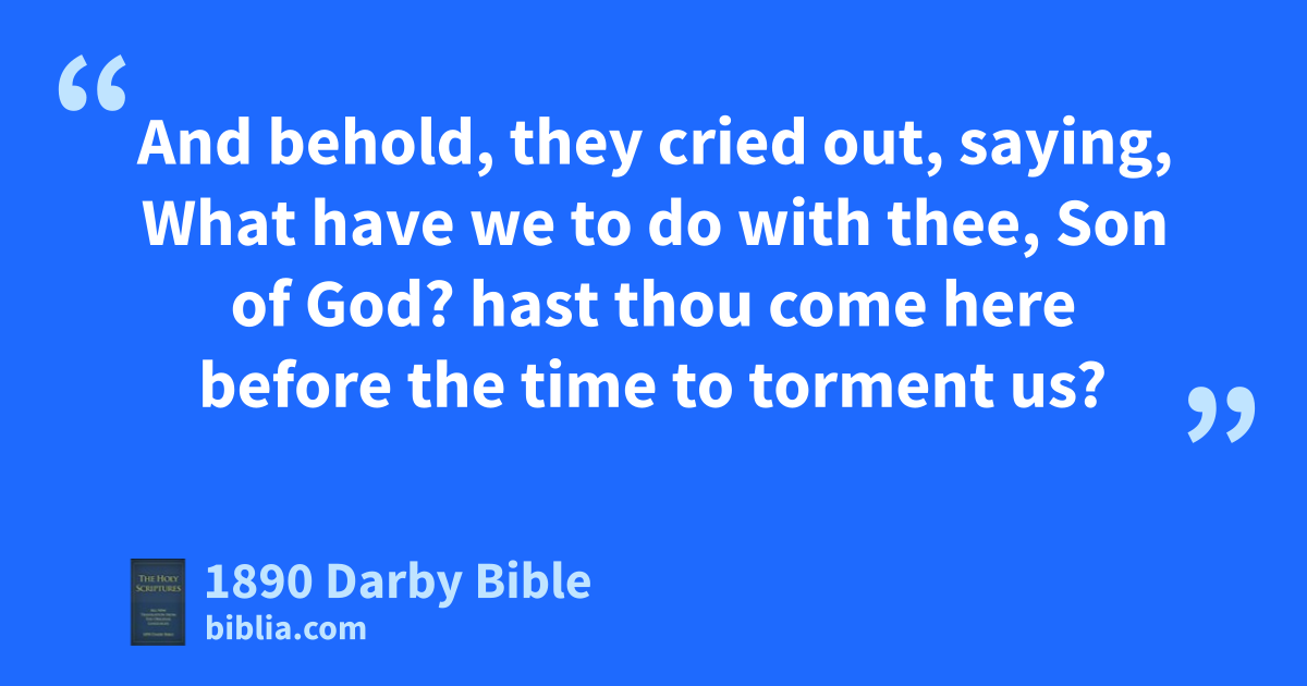 28 And there met him, when he came to the other side, to the country of the Gergesenes, two possessed by demons, coming out of the tombs, exceeding dangerous, so that no one was able to pass by that way. 29 And behold, they cried out, saying, What have we to do with thee, Son of God? hast thou come here before the time to torment us? 30 Now there was, a great way off from them, a herd of many swine feeding; 31 and the demons besought him, saying, If thou cast us out, send us away into the herd of swine. 32 And he said to them, Go. And they, going out, departed into the herd of swine; and lo, the whole herd of swine rushed down the steep slope into the sea, and died in the waters. 33 But they that fed them fled, and went away into the city and related everything, and what had happened as to those possessed by demons. 34 And behold, the whole city went out to meet Jesus; and when they saw him, they begged him to go away out of their coasts.