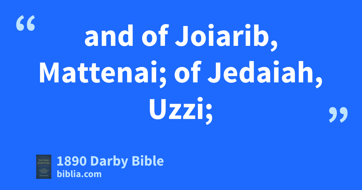 1 And these are the priests and the Levites that went up with Zerubbabel the son of Shealtiel, and Jeshua: Seraiah, Jeremiah, Ezra, 2 Amariah, Malluch, Hattush, 3 Shechaniah, Rehum, Meremoth, 4 Iddo, Ginnethoi, Abijah, 5 Mijamin, Maadiah, Bilgah, 6 Shemaiah, and Joiarib, Jedaiah, 7 Sallu, Amok, Hilkijah, Jedaiah. These were the chief of the priests and of their brethren in the days of Jeshua. 8 And the Levites: Jeshua, Binnui, Kadmiel, Sherebiah, Judah, Mattaniah, who was over the thanksgiving, he and his brethren; 9 and Bakbukiah and Unni, their brethren, were over against them as watches. 10 And Jeshua begot Joiakim, and Joiakim begot Eliashib, and Eliashib begot Joiada, 11 and Joiada begot Jonathan, and Jonathan begot Jaddua. 12 And in the days of Joiakim were priests, chief fathers: of Seraiah, Meraiah; of Jeremiah, Hananiah; 13 of Ezra, Meshullam; of Amariah, Jehohanan; 14 of Melicu, Jonathan; of Shebaniah, Joseph; 15 of Harim, Adna; of Meraioth, Helkai; 16 of Iddo, Zechariah; of Ginnethon, Meshullam; 17 of Abijah, Zichri; of Miniamin and Moadiah, Piltai; 18 of Bilgah, Shammua; of Shemaiah, Jehonathan; 19 and of Joiarib, Mattenai; of Jedaiah, Uzzi; 20 of Sallai, Kallai; of Amok, Eber; 21 of Hilkijah, Hashabiah; of Jedaiah, Nethaneel. 22 of the Levites, the chief fathers were recorded in the days of Eliashib, Joiada, and Johanan, and Jaddua, and the priests, until the reign of Darius the Persian. 23 The children of Levi, the chief fathers, were recorded in the book of the chronicles, even until the days of Johanan the son of Eliashib. 24 And the chief Levites: Hashabiah, Sherebiah, and Jeshua the son of Kadmiel, with their brethren over against them, to praise and to give thanks, according to the commandment of David the man of God, ward over against ward. 25 Mattaniah and Bakbukiah, Obadiah, Meshullam, Talmon, Akkub, were doorkeepers keeping the ward at the storehouses of the gates. 26 These were in the days of Joiakim the son of Jeshua the son of Jozadak, and in the days of Nehemiah the governor, and of Ezra the priest, the scribe.