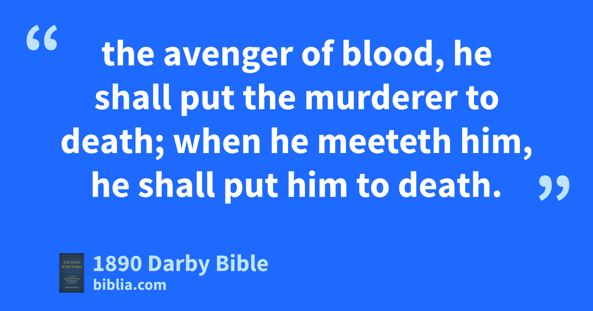 9 And Jehovah spoke to Moses, saying, 10 Speak unto the children of Israel, and say unto them, When ye pass over the Jordan into the land of Canaan, 11 then ye shall appoint for yourselves cities: cities of refuge shall they be for you; that a manslayer may flee thither, who without intent smiteth a person mortally. 12 And ye shall have these cities for refuge from the avenger; that the manslayer die not, until he have stood before the assembly in judgment. 13 And the cities that ye shall give shall be six cities of refuge for you. 14 Three cities shall ye give on this side of the Jordan, and three cities shall ye give in the land of Canaan; they shall be cities of refuge. 15 For the children of Israel, and for the stranger, and for the sojourner among them shall these six cities be a refuge, that one who smiteth a person mortally without intent may flee thither. 16 And if he have smitten him with an instrument of iron, so that he die, he is a murderer: the murderer shall certainly be put to death. 17 And if he have smitten him with a stone from the hand, wherewith one may die, and he die, he is a murderer: the murderer shall certainly be put to death. 18 Or if he have smitten him with an instrument of wood, in the hand, wherewith one may die, and he die, he is a murderer: the murderer shall certainly be put to death; 19 the avenger of blood, he shall put the murderer to death; when he meeteth him, he shall put him to death. 20 And if he thrust at him out of hatred, or hurl at him intentionally, so that he die, 21 or from enmity smite him with his hand, so that he die, he that smote him shall certainly be put to death; he is a murderer: the avenger of blood shall put the murderer to death, when he meeteth him. — 22 But if he have thrust at him suddenly without enmity, or have cast upon him anything unintentionally, 23 or have smitten him with any stone wherewith one may die, without seeing him, and have cast it upon him so that he die, and he was not his enemy, neither sought his harm: 24 then the assembly shall judge between the smiter and the avenger of blood according to these judgments; 25 and the assembly shall rescue the manslayer out of the hand of the avenger of blood, and the assembly shall restore him to the city of his refuge, whither he had fled; and he shall abide in it until the death of the high-priest, who was anointed with the holy oil. 26 But if the manslayer shall in any way come outside the limits of the city of his refuge whither he hath fled, 27 and the avenger of blood find him outside the limits of his city of refuge, and the avenger of blood kill the manslayer, there shall be no blood-guiltiness upon him; 28 for the manslayer should have remained in the city of his refuge until the death of the high-priest; but after the death of the high-priest he may return into the land of his possession. 29 And this shall be unto you a statute of right throughout your generations in all your dwellings. 30 Whoever shall smite a person mortally, at the mouth of witnesses shall the murderer be put to death; but one witness shall not testify against a person to cause him to die. 31 And ye shall take no satisfaction for the life of a murderer, who is guilty of death, but he shall certainly be put to death. 32 And ye shall take no satisfaction for him that hath fled to the city of his refuge, that he should come again to dwell in the land, until the death of the priest. 33 And ye shall not pollute the land wherein ye are; for blood, it polluteth the land; and there can be no atonement made for the land, for the blood that hath been shed therein, but by the blood of him that shed it. 34 And ye shall not defile the land that ye inhabit, in the midst whereof I dwell; for I am Jehovah who dwell in the midst of the children of Israel.