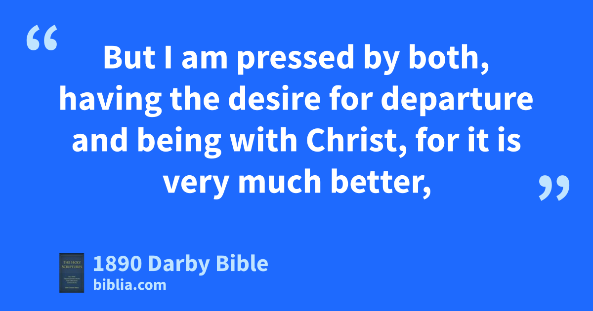 21 For for me to live is Christ, and to die gain; 22 but if to live in flesh is my lot, this is for me worth the while: and what I shall choose I cannot tell. 23 But I am pressed by both, having the desire for departure and being with Christ, for it is very much better, 24 but remaining in the flesh is more necessary for your sakes; 25 and having confidence of this, I know that I shall remain and abide along with you all, for your progress and joy in faith; 26 that your boasting may abound in Christ Jesus through me by my presence again with you.