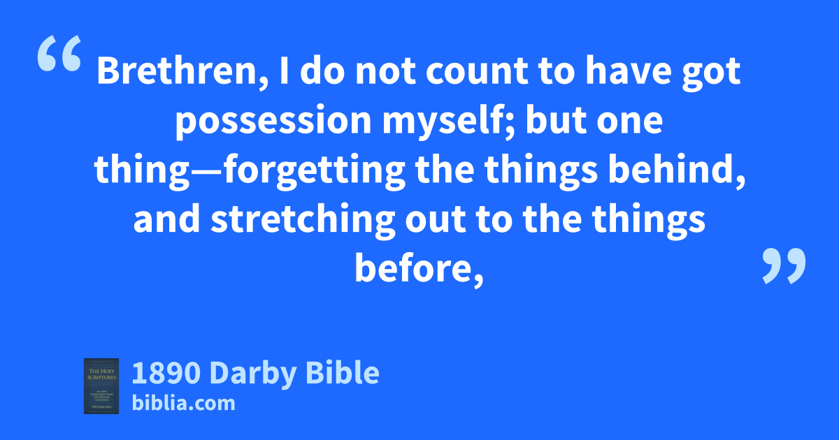9 and that I may be found in him, not having my righteousness, which would be on the principle of law, but that which is by faith of Christ, the righteousness which is of God through faith, 10 to know him, and the power of his resurrection, and the fellowship of his sufferings, being conformed to his death, 11 if any way I arrive at the resurrection from among the dead. 12 Not that I have already obtained the prize, or am already perfected; but I pursue, if also I may get possession of it, seeing that also I have been taken possession of by Christ Jesus. 13 Brethren, I do not count to have got possession myself; but one thing—forgetting the things behind, and stretching out to the things before, 14 I pursue, looking towards the goal, for the prize of the calling on high of God in Christ Jesus.