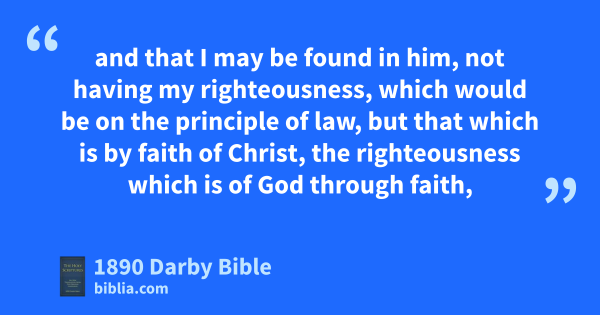 9 and that I may be found in him, not having my righteousness, which would be on the principle of law, but that which is by faith of Christ, the righteousness which is of God through faith, 10 to know him, and the power of his resurrection, and the fellowship of his sufferings, being conformed to his death, 11 if any way I arrive at the resurrection from among the dead. 12 Not that I have already obtained the prize, or am already perfected; but I pursue, if also I may get possession of it, seeing that also I have been taken possession of by Christ Jesus. 13 Brethren, I do not count to have got possession myself; but one thing—forgetting the things behind, and stretching out to the things before, 14 I pursue, looking towards the goal, for the prize of the calling on high of God in Christ Jesus.