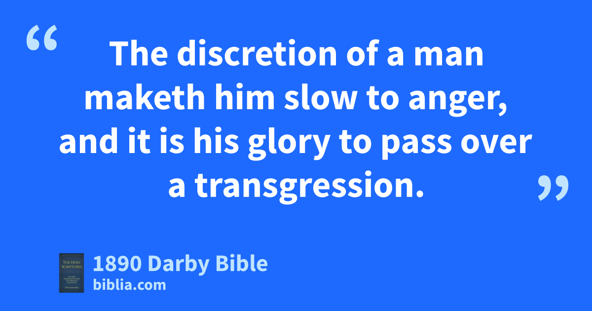 11 The discretion of a man maketh him slow to anger, and it is his glory to pass over a transgression.