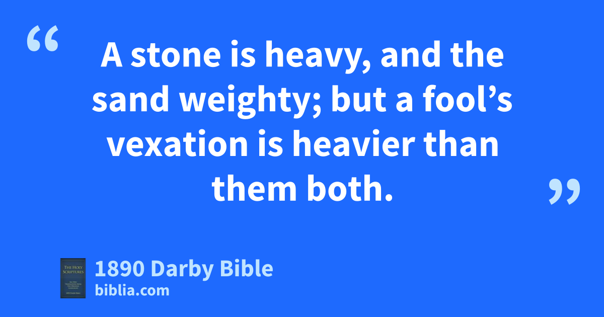 3 A stone is heavy, and the sand weighty; but a fool’s vexation is heavier than them both. 4 Fury is cruel, and anger is outrageous; but who is able to stand before jealousy?